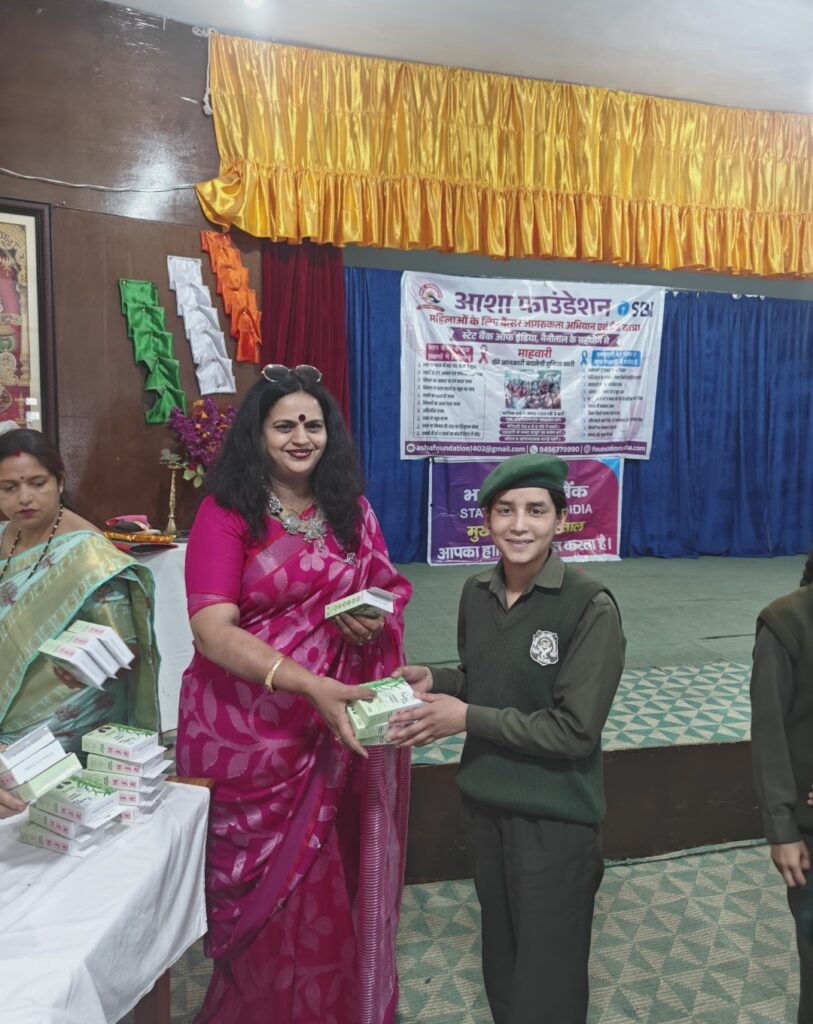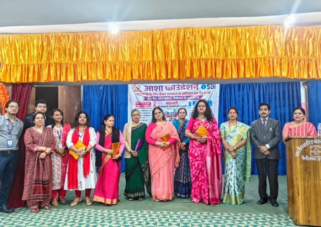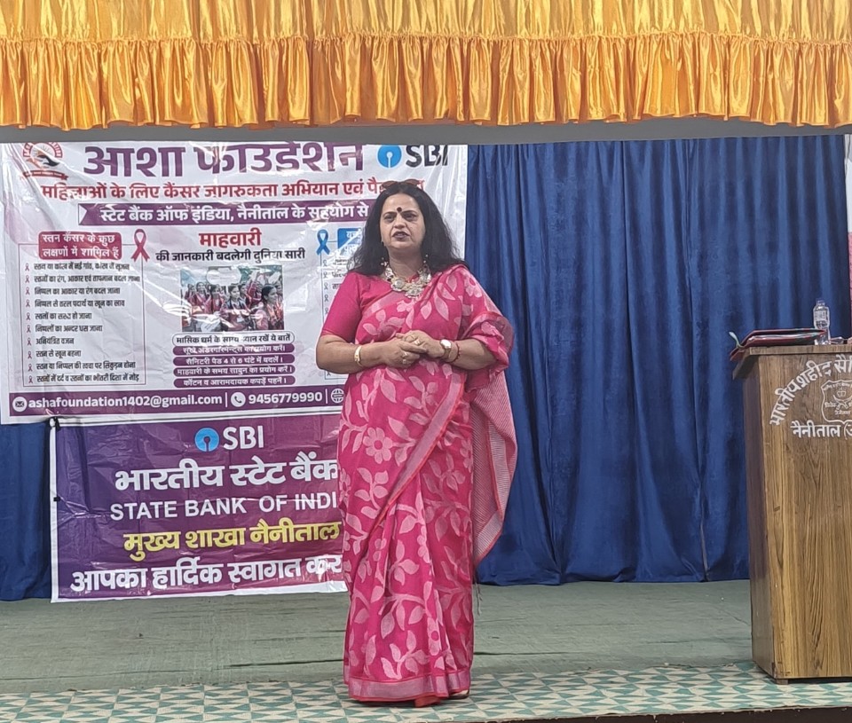 नैनीताल। सरोवर नगरी में आशा फाउंडेशन के द्वारा लगातार चले आ रहे जागरूकता अभियान के तहत आज मंगलवार को भारतीय शहीद सैनिक स्कूल में स्टेट बैंक ऑफ इंडिया के सहयोग से जागरूकता कार्यक्रम आयोजित किया गया। जिसके अंतर्गत भारतीय शहीद सैनिक विद्यालय की लगभग 300 बालिकाओं और शिक्षिकाओं को जागृत करने के साथ-साथ उनका स्वयं की सुरक्षा के विषय में भी बताया गया ।आशा फाउंडेशन की अध्यक्ष आशा शर्मा ने विद्यालय के प्रधानाचार्य विशन सिंह मेहता और शिक्षिकाओं का आभार व्यक्त किया। अध्यक्ष आशा शर्मा का कहना है कि उनकी यह ,मुहिम युवाओं के लिए और युवाओं के साथ,है। उनका मानना है की कोई भी मुहिम युवाओं के बिना अधूरी है। और आज के समय में कैंसर जैसी महामारी की गिरफ्त में युवा ज्यादा आ रहे हैं। आज उन्होंने बालिकाओं को आंतरिक रूप से मजबूत बनने के लिए कहा उनका कहना है कि अगर कोई भी लड़की या महिला आंतरिक रूप से मजबूत है तो उसे बाहरी रूप के खतरे से निपटने में आसानी होती है। हमारे समाज में बहुत सी गलत अवधारणाओं के चलते बालिकाएं अपनी बात खुलकर नहीं कर पाती हैं। और वह अधूरी जानकारी के चलते बीमारियों के गिरफ्त में आ जाती हैं ।आज बच्चियों को माहवारी के समय होने वाली सभी समस्याओं के बारे में बताया गया। उसका समाधान भी दिया गया। आज उनको बाजार में मिलने वाली पैड्स जो की हर किसी के लिए सामान्य रूप से उपलब्ध कराना संभव नहीं है।विद्यालय में जाकर बात करने से पता चला कि आज भी बहुत लोगों की पहुंच में पैड्स नहीं है आशा फाउंडेशन की मुहिम लगातार पर्यावरण को ध्यान में रखते हुए और बाजार की पैड्स से होने वाले दुष्प्रभाव को देखते हुए रेउसबल पैड्स के ऊपर काम किया जा रहा है ।आज सभी बालिकाओं और शिक्षिकाओं को कपड़े से बनी हुई रेउसबल पैड्स फ्री आशा फाउंडेशन द्वारा मुहैया कराए गए। जिनको पाकर उनके के चेहरों पर मुस्कान देखने को मिली आज बालिकाओं को स्तन कैंसर के विषय में भी बताया गया ताकि वह स्वयं की और अपने परिवार की प्रत्येक महिला को स्वयं परीक्षण के विषय में बता सके और कैंसर जैसी महामारी से बच सके। क्योंकि स्तन कैंसर में बहुत से लक्षण दिखाई देते हैं जिनको हम स्वयं प्रशिक्षण में पहचान सकते हैं। स्वयं परीक्षण से हम आने वाले खतरे से काफी हद तक बचाव कर सकते हैं।आज नारी सशक्तिकरण पर भी उनको बताया गया की कैसे एक बेटी का सफर एक स्त्री बनने तक आसानी से तय किया जा सकता है।बालिकाओं को स्वयं के साथ-साथ अपने परिवार की प्रत्येक महिला को सचेत करने के लिए बताया गया। साथ में समाज में फैलती हुई एक संक्रामक बीमारी जिसकी गिरफ्त में हमारे युवा आते जा रहे हैं वो है नशाखोरी आज बालिकाओं को घर के प्रत्येक सदस्य पर नजर रखने के लिए बताया गया ।ताकि उनके आसपास कोई 