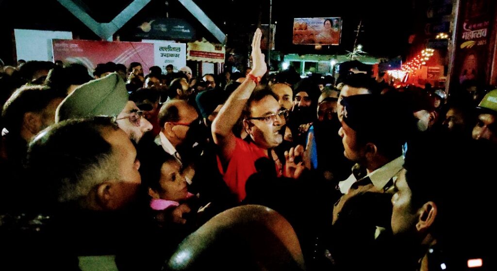 नैनीताल। सरोवर नगरी के तल्लीताल बाजार मेडिकल स्टोर में पुलिस उप निरीक्षक अंजुला जॉन के चेकिंग अभियान के दौरान चालान किए जाने पर व्यापारी आक्रोशित हो गए और चलानी विरोध का अपने प्रतिष्ठान बनकर गांधी चौक पर धरना प्रदर्शन कर मार्ग को जाम कर दिया। व्यापारियों के विरोध के चलते गाड़ियों की लंबी-लंबी लाइन लग गई और लगभग 2 घंटे लगे जाम के चलते लोगों को परेशानियों का सामना करना पड़ा। बता दे शासन द्वारा एक आदेश जारी किया गया है जिसके अनुसार सभी मेडिकल स्टोर पर सीसीटीवी कैमरे लगाना अनिवार्य है। महिला उपनिरीक्षक अंजुला जॉन तल्लीताल बाजार क्षेत्र में मेडिकल की दुकानों में चेकिंग करने गई थी और उनके द्वारा आयुर्वेदिक पंत जी की दुकान का नगद चालान किया गया उसके बाद वह टोनी मेडिकल स्टोर पहुंची तो व्यापारियों और उनके बीच काफी बहस हुई। और व्यापारी आक्रोशित हो गए और उन्होंने अपने प्रतिष्ठान बनकर गांधी चौक तल्लीताल डॉट पर धरना प्रदर्शन कर जाम लगा दिया। इस दौरान व्यापार मंडल अध्यक्ष मारुति नंदन शाह सहित पदाधिकारी भी धरना स्थल पर पहुंच गए और महिला उप निरीक्षक को लाइन हाजिर करने की मांग पर अड गए थाना अध्यक्ष नयाल जी के समझाने पर वह नहीं माने इस दौरान उन्होंने अपने आला अधिकारियों को घटना की सूचना दी और मौके पर पुलिस क्षेत्राधिकारी सुमित जी मौके पर पहुंच कर व्यापार से वार्ता कर जांच का आश्वासन दिया। इस दौरान विधायक सरिता आर्या और नगर पालिका अध्यक्ष सरस्वती खेतवाल भी धरने पर पहुंच गई और उनके द्वारा भी एसएसपी से फोन पर वार्ता की गई। कहा एक सप्ताह के भीतर जांच कर अगर महिला उप निरीक्षक दोषी पाई जाती हैं तो उनके खिलाफ कानून के तहत कार्रवाई की जाएगी। इस बात का समर्थन करते हुए व्यापार मंडल अध्यक्ष मारुति नंदन शाह ने व्यापारियों से आंदोलन को समाप्त करने का निवेदन करते हुए मामला शांत किया। और व्यापारियों द्वारा धरने को समाप्त किया गया। इस मौके पर महामंत्री अमनदीप आनंद, उपाध्यक्ष नासिर खान, महिला उपाध्यक्ष ममता जोशी, उप सचिव जयंत उप्रेती, कोषाध्यक्ष हरीश लाल, पूर्व अध्यक्ष भुवन लाल शाह,भगवत पंत, राजेंद्र मनराल, सुखदीप आनंद, विकी राठोर, आयुष भंडारी, विजय कुमार, नीरज पंत, दिनेश कर्नाटक पप्पू,सहित दर्जनों व्यापारी मौजूद थे।