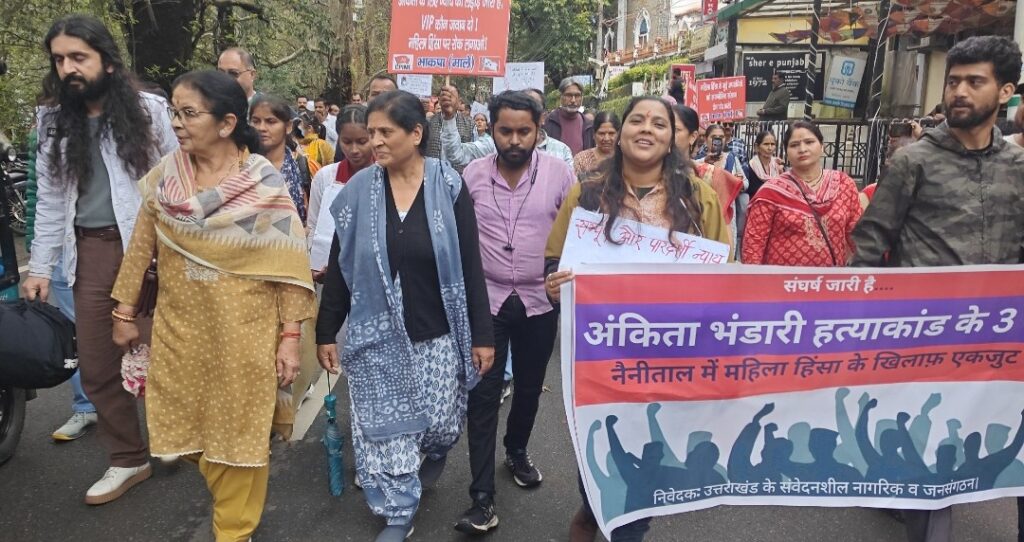 नैनीताल सरोवर नगरी में गुरुवार प्रात 11:00 बजे अंकिता भंडारी हत्याकांड की तीसरी बरसी पर एक कार्यक्रम आयोजित किया गया, जिसमें रामलीला स्टेज मल्लीताल से एक जुलूस प्रारंभ होकर माल रोड होते हुए गांधी चौक तल्लीताल डांठ तक आया। मल्लीताल में कार्यक्रम की शुरुआत ’औरतें उठी नहीं तो जुल्म बढ़ता जाएगा’ जनजीत से शुरुआत हुई जिसे सतीश धौलाखंडी, त्रिलोचन भट्ट ने गाया। इस दौरान सामाजिक कार्यकर्ता और वरिष्ठ पत्रकार राजीव लोचन साह के शुरुआती सम्बोधन के बाद जुलूस के शक्ल में सभी लोग गांधी मूर्ति पर तल्लीताल डांठ की ओर चले। रास्ते में जनगीत और नारे लगते रहे और फिर वहां पर एक सभा का आयोजन किया गया। जिसमें विभिन्न वक्ताओं ने अंकिता और अन्य पीड़ित महिलाओं के लिए न्याय की मांग की। कार्यक्रम में सामाजिक संगठनों, कार्यकर्ताओं और आम लोगों ने एकजुट होकर महिला हिंसा, प्रशासनिक लापरवाही और सत्ताधारी व्यवस्था के खिलाफ आवाज उठाई। कार्यक्रम की शुरुआत सतीश धौलाखंडी और पी सी तिवारी ने जनगीत “अब तो होश में आ जाओ, ओ शब्दों के बाजीगर” गाते हुए समाज और प्रशासन को जागरूक करने की एक पल की। मुकेश सेमवाल ने अंकिता के माता-पिता की दयनीय स्थिति का जिक्र किया। उन्होंने बताया कि अंकिता की मां अस्पताल में भर्ती हैं जिस कारण पिता कार्यक्रम में नहीं आ सके।