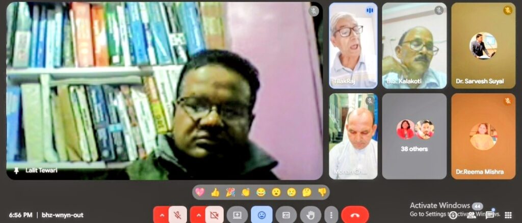 अंत में, डॉ. ललित तिवारी जी ने वक्ता डॉ. जोशी को धन्यवाद दिया और सभी प्रतिभागियों के जुड़ने के लिए आभार व्यक्त किया। सत्र का समापन इस संदेश के साथ हुआ कि हमें अपने पर्यावरणीय गतिविधियों के दीर्घकालिक प्रभावों पर विचार करना चाहिए और भविष्य के लिए प्रकृति के संरक्षण की दिशा में प्रयास करना चाहिए। कार्य क्रम।में प्रॉफ अनिल जोशी , कवि मोहन जोशी ,प्रॉफ श्रीश मौर्य ,प्रॉफ गीता तिवारी ,डॉ युगल जोशी , डॉ जी सी एस नेगी ,डॉ संतोष उपाध्याय ,डॉ पैनी जोशी , डॉ नंदन मेहरा ,डॉ नवीन पांडे ,डॉ अल्बा ,ज्योति कांडपाल , डॉ हर्षित पंत , वंदना शर्मा , डॉ मथुराल इमलाल,निक्की नौटियाल , डॉ पुष्पा रुवाली, दिनेश पांडे , कृपाल सिंह सहित 53 लोग उपस्थित रहे।
