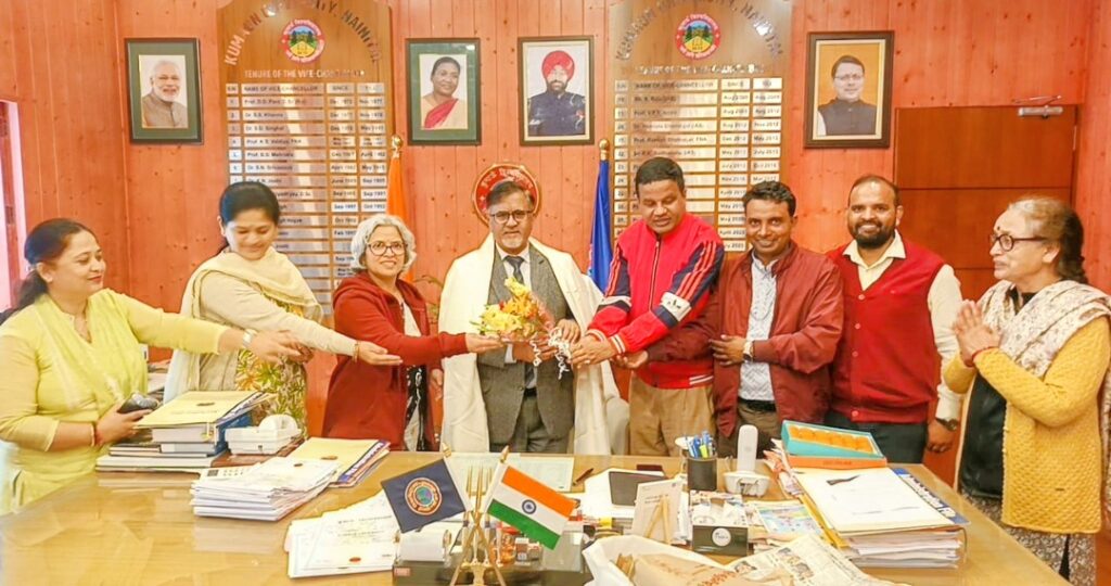 नैनीताल। सरोवर नगरी में कुमाऊं विश्वविद्यालय शिक्षक संघ कूटा तथा उत्तराखंड राज्य विश्वविद्यालय यूटा तथा एलुमनी सेल के शिष्ट मंडल ने कुलपति प्रो दिवान सिंह रावत से मुलाकात कर उन्हें एफ एन ए फैलो ऑफ नेशनल अकादमी ऑफ साइंस इंसा फैलो बनने पर बधाई दी । इस अवसर पर शिष्ट मंडल ने कुलपति को शॉल उड़ाकर ,पुष्प गुच्छ भेट कर तथा लड्डू खिलाकर मुबारकबाद दी तथा इस अवसर पर लड्डू बाटे गए ।उल्लेखनीय है प्रॉफ रावत इससे पहले फैलो ऑफ नेशनल अकादमी ऑफ साइंसेज नासी फैलो ,फैलो ऑफ रॉयल सोसाइटी ऑफ केमिस्ट्री तथा सी चेम लंदन की सदस्यता हासिल कर चुके है । कूटा तथा यूटा शिष्ट मंडल ने इस अवसर पर उनके उज्जवल भविष्य की कामना की है तथा इससे विश्वविद्यालय का गौरव बताया । प्रॉफ रावत डीएसबी परिसर से ही बी एस सी तथा एम एस सी कर चुके है । विश्वविद्यालय के वनस्पति विज्ञान के प्रॉफ एस पी सिंह ,प्रॉफ जे एस सिंह तथा भूगर्भशास्त्री प्रॉफ के एस वल्दिया फैलो ऑफ नेशनल अकादमी इंसा फैलो चयनित हुए तथा प्रॉफ वाई पी एस पांगती फेलो ऑफ नेशनल अकादमी ऑफ साइंसेज नासी फैलो हो चुके हैं तथा प्रॉफ शेखर पाठक एवं प्रॉफ के एस वल्दिया पद्मश्री तथा प्रॉफ वल्दिया पदम विभूषण भी रह चुके है । इस अवसर पर कूटा ने ग्रीष्म अवकाश के शेष बचे दिवस अवकाश का निवेदन भी किया तथा सी ए एस के शेष बचे साक्षात्कार पर भी चर्चा की ।शिष्ट मंडल में प्रॉफ ललित तिवारी ,प्रॉफ नीलू ,प्रॉफ सुषमा टमटा , डॉ विजय कुमार ,डॉ संतोष कुमार प्रॉफ लेकिन आ पांडे ,डॉ शिवांगी चन्याल शामिल रहे ।