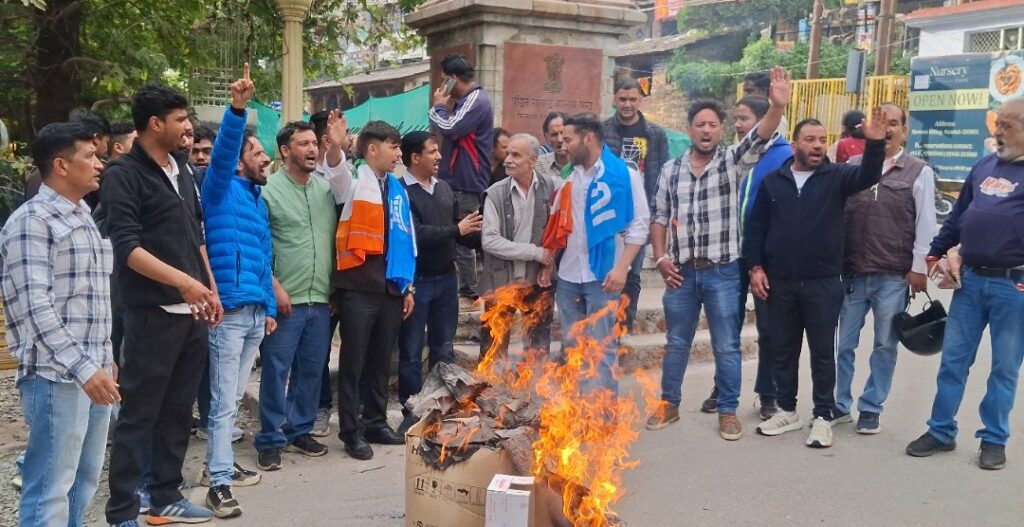 कांग्रेसियों में आया उबाल, धामी सरकार व यूकेएसएसएसकी का विरोध करते हुए नारेबाजी की और फूंका पुतला