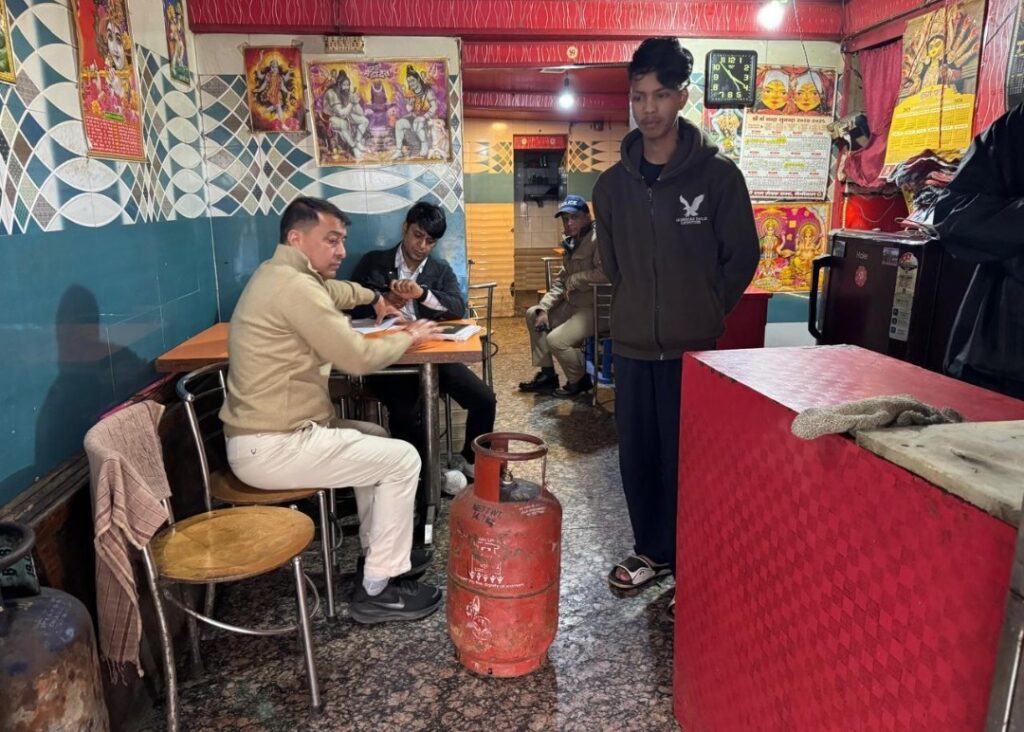 नैनीताल । उच्चाधिकारियों के निर्देश पर वीरवार को क्षेत्रीय खाद्य अधिकारी सुरेन्द्र सिंह बिष्ट के नेतृत्व में खाद्य नागरिक आपूर्ति एवं उपभोक्ता मामले विभाग और पुलिस विभाग की टीम द्वारा संयुक्त रूप से घरेलू गैस सिलेंडर का व्यावसायिक दुरुपयोग रोकने के प्रयोजन से मल्लीताल स्थित २५ प्रतिष्ठानों का औचक निरीक्षण किया गया ।
