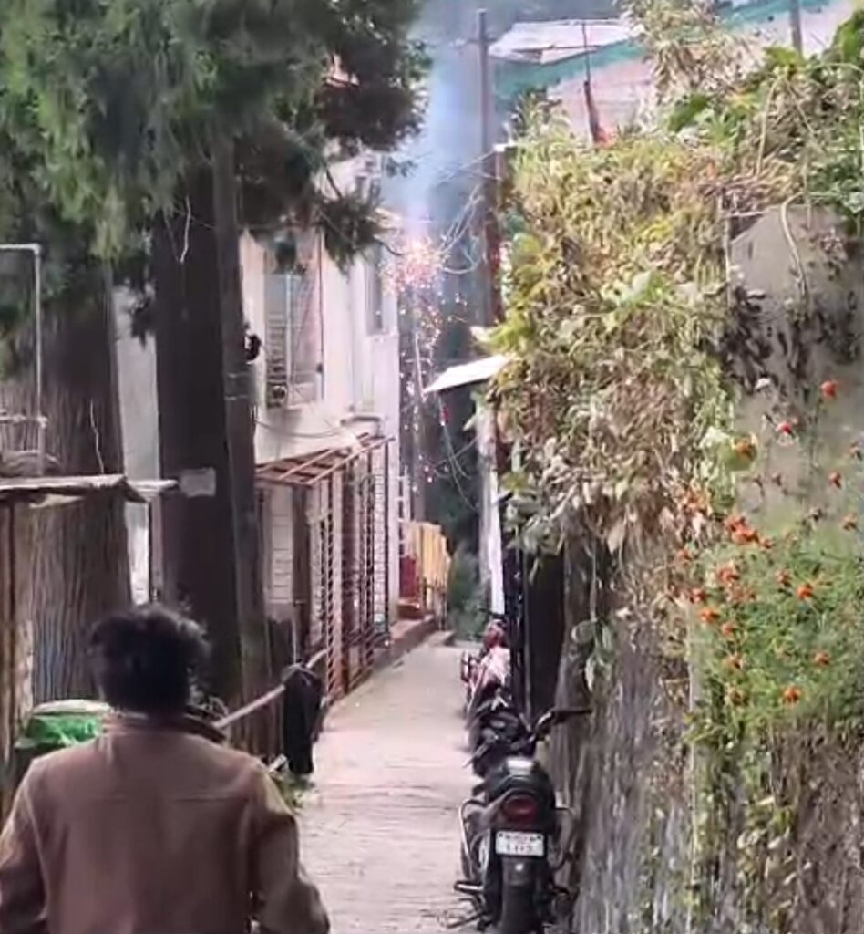 नैनीताल। सरोवर नगरी के शेरवानी क्षेत्र जुबली हाल के पास विधुत लाईन के तारो मे बिजली की स्पार्किंग हूई वह तो गनीमत रही कोई दुर्घटना नहीं हुई क्षेत्र में अधिकतर पोलों पर तारों के जाल है। और आगे भी कभी कोई दुर्घटना हो सकती है बता दें उक्त स्थान पर जहां स्पार्किंग हुई वह आम रास्ता है।