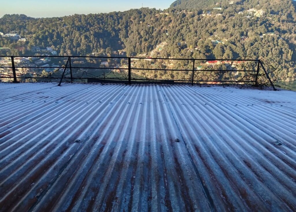 नैनीताल। सरोवर नगरी में इन दिनों कड़ाके की सुखी सर्दी पड़ने लगी है। जिसके चलते सर्दी जुकाम भी बढ़ गया है। साथ ही पाला शाम होते ही पढ़ने से ठंड का प्रकोप और बढ़ने लगा है। वह तो यह गनीमत है सुबह सूर्य देवता के दर्शन बढ़िया हो रहे हैं जिसके चलते लोग धूप का आनंद ले रहे हैं जेसे शाम होने लगती है पाले के साथ ठंड का पढ़ना शुरू हो जाता है। और प्रातः पाले की परत सफेद चादर जैसी पर नजर आती है। बता दें कडाके की सर्दी के चलते लोगों के गर्म कपड़े सभी निकल गए हैं। आप फोटो में देख सकते हैं छतो पर पाल की परत की चादर जो बर्फ जैसी नजर आ रही है।