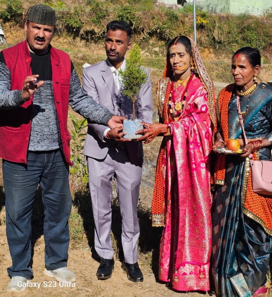 पौधा रोपण अभियान को विवाह समारोह से जोड़ते हुए अभियान के 505 वें दिन सतगढ़ पिथौरागढ़ में अमर उजाला के पत्रकार दीपक कापडी एवं निशा ने परिणय सूत्र में बंधने के बाद एक पौधा धरती मां के नाम के तहत परिणय पौध लगाया। दीपक व निशा ने कहा कि अब वह इस पौधे की देखभाल घर के एक सदस्य के रूप में करेंगे और अपनी हर सालगिरह में पौधारोपण करेंगे ।दीपक कापडी ने कहा कि वह हमेशा शुभ कार्यों में पौधा रोपण करते हैं ।उन्होंने कहा कि वह अपने आप को भाग्यशाली मानते हैं कि वह इस अभियान का हिस्सा बन रहे हैं। विवाह समारोह में उपस्थित लोगों ने पौधारोपण अभियान की सराहना की। कार्यक्रम में सामाजिक कार्य कार्यकर्ता प्रदीप कन्याल उपस्थित रहे।