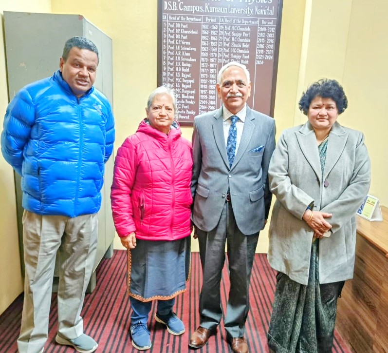 नैनीताल। सरोवर नगरी में कुमाऊं विश्व विधालय के पूर्व छात्र कर्नल विपिन पाण्डे ने अपने पुराने कॉलेज डी एस बी परिसर का आज भ्रमण किया। विपिन पाण्डे ने 1976 में एम एस सी भौतिकी विज्ञान से डी एस बी परिसर कुमाऊं विश्वविधालय से उत्तीर्ण की तथा बाद में फौज ज्वाइन की एवं अवकाश प्राप्त के बाद कॉरपोरेट में अपनी सेवाएं दे रहे है । एलुमनी सेल के महासचिव प्रॉफ ललित तिवारी ने उनसे मुलाकात की तथा विद्यार्थी जीवन से अब तक के उनके अनुभवों को जाना। कर्नल पांडे ने विभागाध्यक्ष प्रो सुची बिष्ट से मुलाकात की तथा लैब भी देखे तथा विद्यार्थियों से मुलाकात की तथा अनुभव साझा किया। इस मोके पर कर्नल पांडे ने विद्यार्थी को सफलता के मंत्र भी दिए। इस दौरान प्रो बिमल पांडे, प्रो सीमा पांडे , डॉ राजकुमार आदि चर्चा में शामिल रहे।