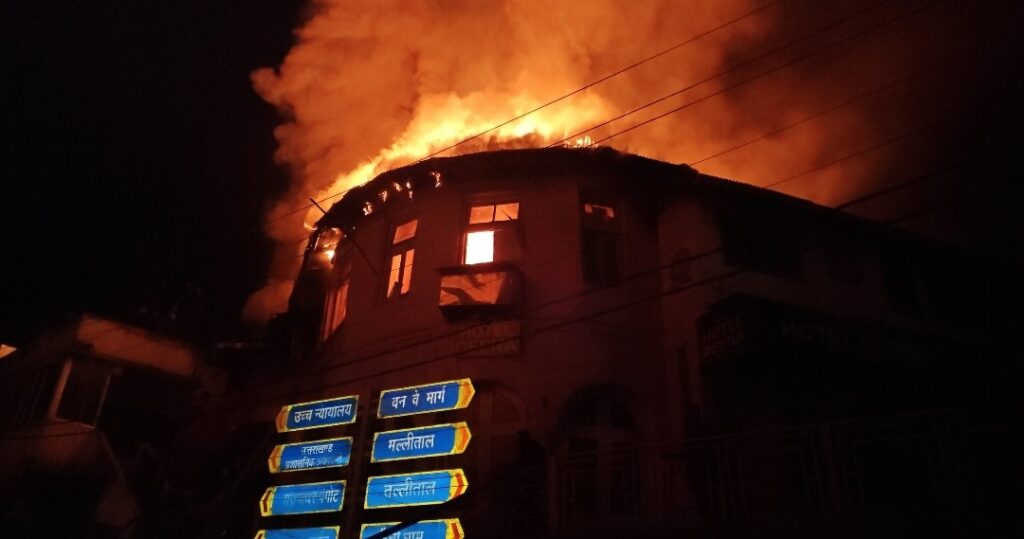 नैनीताल। सरोवर नगरी के चीना बाबा मंदिर स्थित शिशु मंदिर विद्यालय में अचानक 7:00 बजे आग लगने से बिल्डिंग पूरी तरह जलकर राख हो गई है फायर कर्मी और स्थानीय लोग आग बुझाने मैं लगे हुए हैं। भवाली भीमताल आसपास इलाकों से फायर की गाड़ियां आग बुझाने के लिए पहुंच चुकी हैं खबर लिखे जाने से लगभग 6 गाड़ी आग बुझाने में जुटी हुई है। अभी आग पर काबू नहीं पाया गया है।