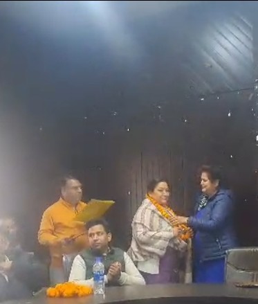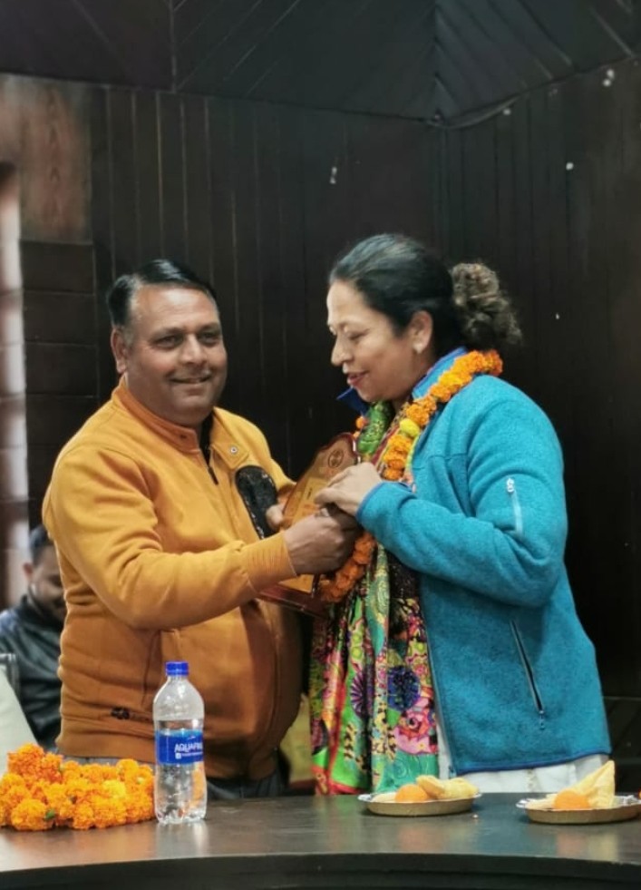 नैनीताल। सरोवर नगरी में नगर पालिका सभागार में देवभूमि सफाई कर्मचारी संघ द्वारा नवनिर्वाचित सभासदों का आज स्वागत कार्यक्रम आयोजित किया गया कार्यक्रम अध्यक्ष त्रिलोकचन टांक के नेतृत्व में आयोजित किया गया संगठन के सभी पदाधिकारीयो और सदस्यों द्वारा एक-एक कर सभी सभासदों को प्रतीक चिन्ह देकर और फूलों की माला पहनकर स्वागत किया गया। जिसमें सपना बिष्ट,मनोज शाह जगाती, गजाला कमाल, भगवत रावत, जितेंद्र पांडे जीनू, गीता उप्रेती, सुरेंद्र कुमार बाबूलाल, रमेश प्रसाद, पूरन बिष्ट, अंकित चंद्रा, को सम्मानित किया गया कुछ सभासद किसी कारण नहीं पहुंच पाए थे। इस दौरान पालिका और शहर के विकास को लेकर हर संभव सहयोग का आश्वासन इन कर्मचारियों द्वारा सभी सम्मानित सभासदों को दिया गया। इस मौके पर अध्यक्ष तिरलोचन टांक, महामंत्री सोनू सहदेव,महेंद्र लाल, उपाध्यक्ष कमल कुमार अमित सहदेव अमन टांक संजय भगत मंगू लाल संजय सौदा विनोद कुमार गुड्डू पालते दिनेश रत्नाकर मनीष कीर्ति सहित अन्य कर्मचारी मौजूद थे। कार्यक्रम का संचालन महामंत्री सोनू सहदेव द्वारा किया गया।