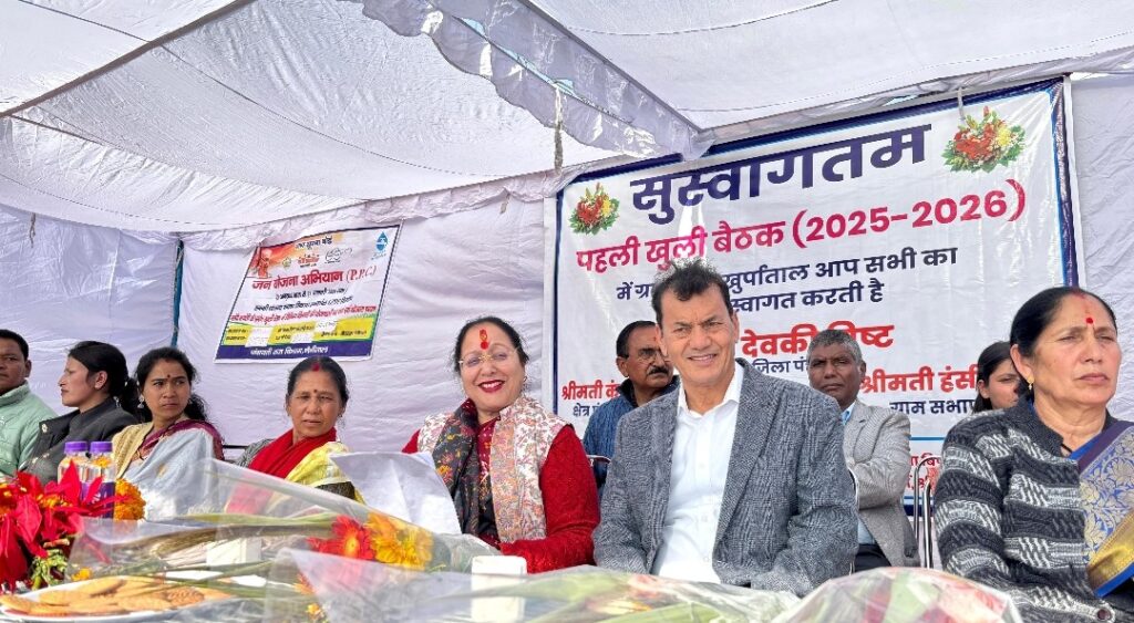 गणेश बिष्ट गोविंद राणा , दीपक मेहरा, सुरेश डालाकोटी, मनमोहन कनवाल, जीवन नेगी, विक्रम कनवाल,समाज कल्याण दिनेश बिष्ट, ग्राम विकास सुनील चनियाल,कृषि, उद्यान, वन, जल संस्थान, खाद्य सहित अन्य विभाग के अधिकारी ग्रामीण उपस्थित रहे। संचालन ग्राम पंचायत अधिकारी द्वारा किया गया।