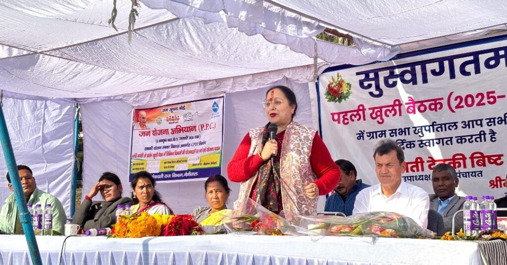 नैनीताल। ग्राम पंचायत खुर्पाताल में गुरुवार को ग्राम सभा की पहली खुली बैठक का आयोजन किया गया। जिसमें जनता के सम्मुख बजट रखा गया विकास योजना पारित हुई। इस बैठक में मुख्य अतिथि विधायक सरिता आर्य विशिष्ट अतिथि ब्लॉक प्रमुख डॉo हरीश सिंह बिष्ट, जिला पंचायत उपाध्यक्षा देवकी बिष्ट ने ग्रामीणों की तर्ज पर ही खुली बैठक में प्रतिभाग किया। बता दे इस बैठक में मौके पर विभागीय अधिकारी उपस्थित रहे। विधायक एवं ब्लॉक प्रमुख ग्रामीणों की समस्याओं का मौके पर ही निस्तारण किया गया।बैठक ओर भी खास रही बैठक में एक गांव ही नहीं बल्कि पूरी न्याय पंचायत खुर्पाताल के सभी ग्राम प्रधान एवं क्षेत्र पंचायत सदस्य भी उपस्थित रहे। सभी को पंचायत के अधिकार कर्तव्य भी बताए गए। ग्राम पंचायत ग्रामीणों द्वारा मोटर मार्ग, पंचायत भवन, निर्माण की मांग, खेल मैदान सुधारीकरण की विधायक एवं प्रमुख से रखी। शीघ्र निराकरण का आश्वासन दिया। ग्रामीणों के समाज कल्याण पेंशन, कृषि, स्वास्थ्य, खाद्य राशन कार्ड, उद्यान, जल संस्थान, की कई समस्याओं का मौके पर निस्तारण हुआ मनरेगा, पेंशन सहित कई प्रस्ताव पारित हुए। खेल मैदान को लेकर विवाद ग्राम पंचायत की जमीन पर ग्राम पंचायत की संपत्ति रहेगी अतिक्रमण नहीं करने दिया जाएगा खेल मैदान ग्रामीणों के लिए खुलेगा। लघु सिंचाई विभाग को गुल मरम्मत करने के निर्देश दिए गए। विधायक सरिता आर्य द्वारा 4 लाख विकास कार्य के लिए घोषणा की। बैठक की अध्यक्षता ग्राम प्रधान खुर्पाताल हंसी नेगी द्वारा की गई। इस अवसर पर ग्राम प्रधान प्रेमा मेहरा, भारती मेहरा, जानकी कोटलिया, गोविंद अधिकारी, कीर्ति आर्य, खुशाल बिष्ट, हेम बहुखंडी, योगेश्वर सिंह,