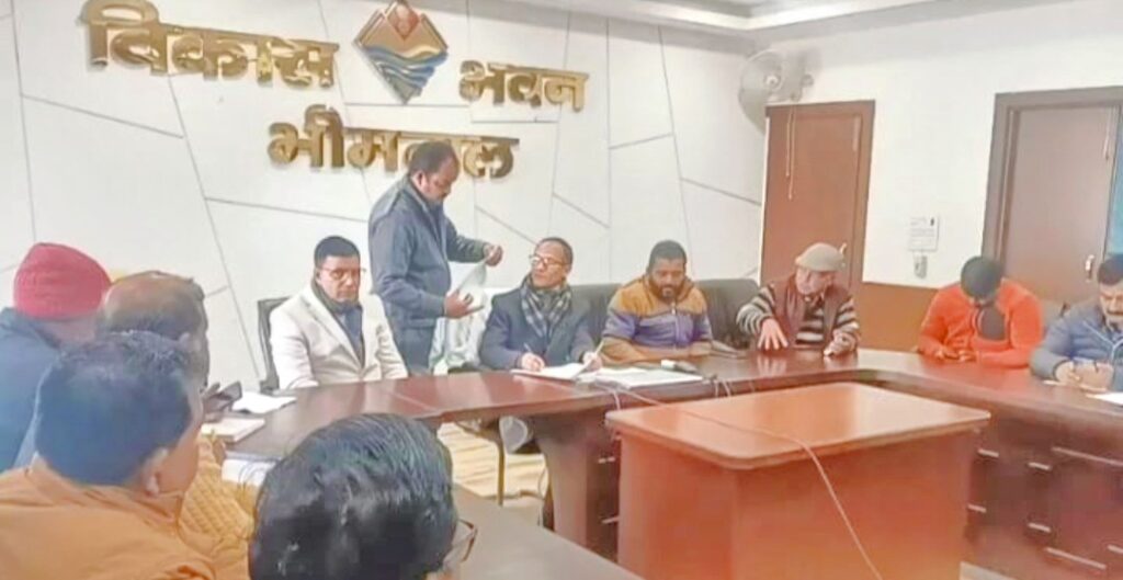 भीमताल नैनीताल। काफी लंबे समय से भीमताल नगर की आम जनता स्वास्थ्य एवं परिवहन संबंधित समस्याओं को लेकर काफी परेशान एवं चिंतित थी, जिस पर नगर के सामाजिक कार्यकर्ता पूरन चंद्र बृजवासी ने इन दोनों माँग पर अभी हाल में माननीय मुख्यमंत्री के नाम मुख्य विकास अधिकारी नैनीताल को ज्ञापन दिया था और रोडवेज परिवहन एवं चिकित्सा संबंधी समस्याओं के समाधान की मांग रखी, जिस पर मुख्य विकास अधिकारी के दिशानिर्देश पर जिला विकास अधिकारी की अध्यक्षता में संबंधित चिकित्सा विभाग, परिवहन विभाग, राजस्व विभाग, नगर पालिका एवं नगर के गणमान्य लोगों के साथ विकास भवन भीमताल सभागार में आज समीक्षा बैठक हुई, बैठक दौरान नगर की दो दशक पुरानी मांग रोडवेज बस अड्डा निर्माण कराने पर अब तक की परिवहन विभाग एवं राजस्व विभाग की कागजी कार्यवाही की जानकारी, जमीन चयन आदि का सामाजिक कार्यकर्ता पूरन बृजवासी द्वारा पूर्ण जानकारी मांगी गई जिस पर अधिकारियों द्वारा कोई कागजी साक्ष्य नहीं दिया गया, जिस पर जिला विकास अधिकारी गोस्वामी द्वारा परिवहन विभाग एवं राजस्व विभाग को मांग पर संयुक्त धरातल पर निरीक्षण करने के निर्देश दिए, साथ ही हल्द्वानी से भीमताल की सवारियों को बैठाने हेतु परिवहन विभाग की गाड़ियां लगाने की मांग राज्य आंदोलनकारी बी.डी.पलड़िया द्वारा रखी गई, जिस पर 2 बस बढ़ाने की बात परिवहन विभाग के अधिकारियों ने कही, साथ ही नई बसे आने पर नौकुचियाताल, भीमताल, नैनीताल रूट पर बसे बढ़ाई जाएगी, बैठक दौरान स्थानीय निवासी रमेश पलड़िया द्वारा बताया गया बोहराकुन समीप पिछले साल रोडवेज बस गिर जाने से गांव का रास्ता टूट गया जिस पर अभी तक निर्माण न हो सका, डीडीओ द्वारा आपदा मद को रास्ता निर्माण कराने के लिए पत्र जारी किया गया, साथ ही रोडवेज बस अड्डे निर्माण एवं नगर की यातायात सुदढ़ हेतु विभागीय अधिकारियों से धरातल पर तेजी लाने को कहाँ, इसके अलावा सामुदायिक स्वास्थ्य केंद्र की स्वास्थ्य सेवाओं के सुधार पर डॉ, नर्सें, स्टाफ तैनाती होना हॉस्पिटल में मानकों के अधीन आवश्यक है, अल्ट्रासाउंड मशीन लगाने, पुराने जीर्ण भवन का निर्माण, डायलिसिस रोगियों के उपचार, एम्बुलेंस संपूर्ण मुद्दों पर चर्चा हुई जिस पर डीडीओ द्वारा हॉस्पिटल में उचित व्यवस्था बनाने एवं अधिकारियों से रिपोर्ट पेश करने को कहां, साथ ही राजस्व विभाग से उप जिला अस्पताल हेतु जमीन चयन करने को कहाँ गया, नगर पालिका अधिकारी को शहर की स्वच्छता पर विशेष ध्यान रखने के निर्देश दिए गए, आवारा कुत्तों की रोकथाम करने के लिए कहाँ गया l जिला विकास अधिकारी ने शीघ्र सभी विभागीय अधिकारियों से मांगों पर कागजी कार्यवाही के साथ रिपोर्ट पेश करने के लिए कहाँ, नेस्ट डेट समय मिलते फिर दी जाएगी