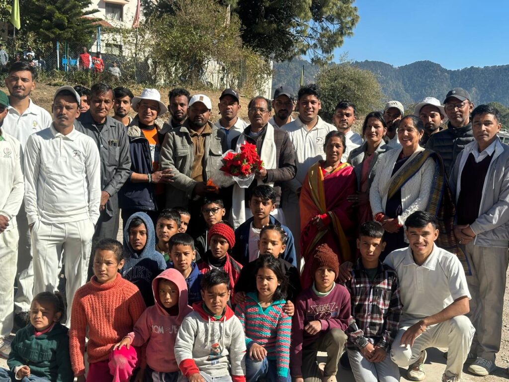 नैनीताल। सरोवर नगरी के समीपवर्ती ग्रामीण क्षेत्रीय प्रीमियम लीग खुर्पाताल क्रिकेट प्रतियोगिता में आज फाइनल मुकाबला खेला गया। कार्यक्रम के मुख्य अतिथि भाजपा के वरिष्ठ नेता हेम आर्य रहे। इस दौरान आयोजकों ने मुख्यअतिथि को पुष्पगुच्छ देकर सम्मानित किया। प्रतियोगिता का शुभारंभ सांस्कृतिक कार्यक्रमों से किया गया। इस दौरान मैदान में विभिन्न कार्यक्रमों का आयोजन किया गया। प्रतियोगिता में नैनीताल जिले की 20 टीमों ने प्रतिभाग किया। आज खेले गए फाइनल मुकाबले में जगोड़ा की टीम ने 12 ओवर में सभी विकेट खोकर 136 रन बनाए,वही लक्ष्य का पीछा करते हुए सीलमोड़ीया की टीम ने 10 ओवर में एक विकेट खोकर जीत हासिल कर ली। मुख्य अतिथि ने विजेता टीम को 12000 और उपविजेता टीम को 8000 का इनाम देकर सम्मानित किया गया। अंपायर की भूमिका में भूपेंद्र कुमार और अजय कनवाल ने निभाई। मैच का देखा जोखा हाल हेमंत बिष्ट ने सुनाया। इस दौरान जिला पंचायत उपाध्यक्ष देवकी देवी,गोविंद अधिकारी, हंसी नेगी,प्रेमा मेहरा, क्षेत्र पंचायत सदस्य त्रिलोक राठौर,पूर्व प्रधान बजून गोविंद राणा, भूतपूर्व जिला पंचायत सदस्य गणेश मेहरा, विक्रम कनवाल, तारा कनवाल, मनीष कनवाल, बबलू राठौर दीपक बिष्ट दर्शन कनवाल व दिगंबर सिंह आदि मौजूद रहे।