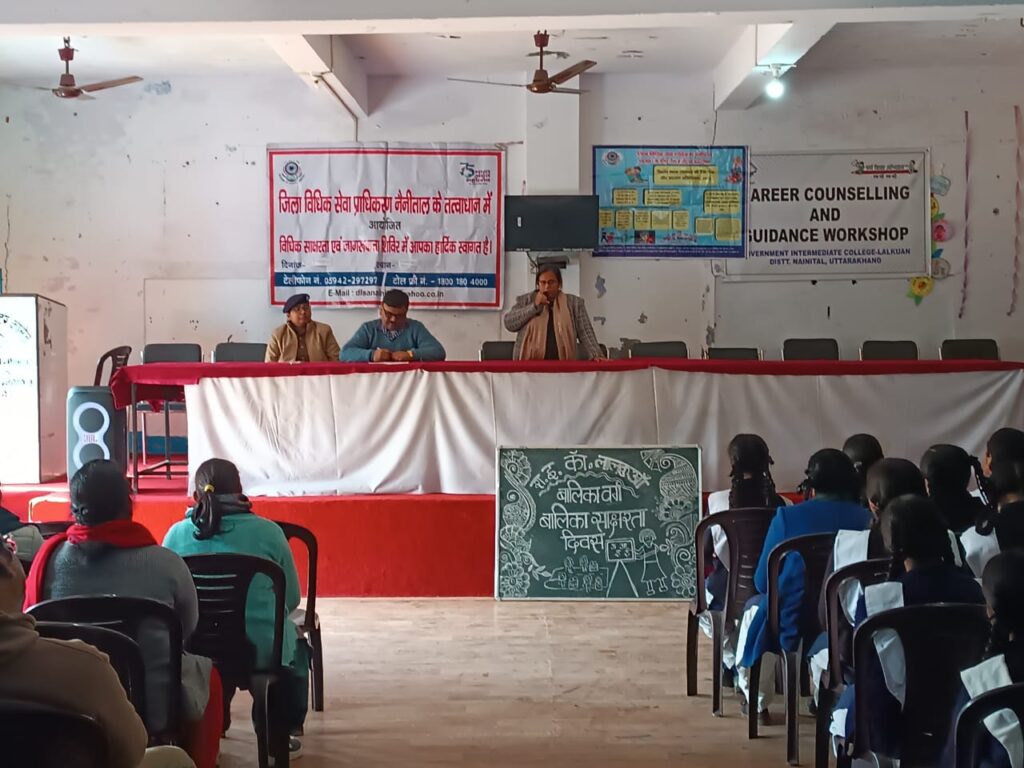 लाल कुआं नैनीताल। उत्तराखण्ड राज्य विधिक सेवा प्राधिकरण, नैनीताल के दिशा निर्देशानुसार एवं अध्यक्ष जिला विधिक सेवा प्राधिकरण, नैनीताल / जिला न्यायाधीश प्रशांत जोशी के निर्देशन में सिविल जज (सी०डि०) / सचिव, जिला विधिक सेवा प्राधिकरण, नैनीताल पारुल थपलियाल के द्वारा “राष्ट्रीय बालिका दिवस” के उपलक्ष्य पर राजकीय इंटर कॉलेज लालकुआ मे विधिका साक्षरता व जगरूकता शिविर का आयोजन किया गया। जिसमे सचिव द्वारा बताया गया की राष्ट्रीय बालिका दिवस बालिकाओं के अधिकारों के प्रति जागरूकता बढ़ाने और लैंगिक भेदभाव से मुक्त समान अवसर और सहायता सुनिश्चित करने का एक अवसर है। यह दिवस बालिकाओं द्वारा सामना की जाने वाली असमानताओं को उजागर करने, उनकी शिक्षा को बढ़ावा देने और समाज को बालिकाओं को समान रूप से महत्व देने और सम्मान करने के लिए प्रोत्साहित करने का भी प्रयास करता है। इसका प्रमुख उद्देश्य बालिकाओं के प्रति सामाजिक दृष्टिकोण में बदलाव लाना, कन्या भ्रूण हत्या जैसे मुद्दों का समाधान करना, घटते लिंग अनुपात के बारे में जागरूकता बढ़ाना और बालिकाओं के लिए अधिक समावेशी और न्यायसंगत वातावरण को बढ़ावा देना है। शिविर मे बलिकाओ के अधिकार, के बारे मे भी विस्तार पूर्ण जानकारी दी गई. यदि किसी भी बालिका को किसी तरह की समस्या होती हैं तो वह महिला हेल्प लाइन नंबर 1090 पर संपर्क कर सहायता प्राप्त कर सकते है. शिविर मे सचिव द्वारा जिला विधिक सेवा प्राधिकरण के क्रियाकलापो बारे में बताया गया तथा शिविर में पोस्को एक्ट, मोटर वाहन अधिनियम, बाल विवाह, महिला प्रतिकार योजना के बारे में विस्तार पूर्ण जानकारियां भी उपलब्ध कराई गई ,यदि किसी भी व्यक्ति को यदि किसी भी तरह की कानूनी सहायता की आवश्यकता हो तो वह जिला विधिक सेवा प्राधिकरण प्राप्त कर सकता है। शिविर मे उपस्थित एस0आई0 वंदना चौहान द्वारा बच्चों को कानूनी ज्ञान होना कितना महत्व पूर्ण है उसके बारे मे बताया गया, तथा समाज मे प्रचलित साइबर अपराधाओ के बारे मे विस्तार पूर्ण जानकारी देते हुए बताया की साइबर अपराध के पीड़ित सबसे जयादा बच्चे होते है. जो बिना सोचे समझे फोन शोशल मीडिया का अत्यधिक प्रयोग करते हैं..शिविर मे प्रधानचार्य कमलेश खरखवाल, यशवंत कुमार, संजय सिंह पी एल वी मौजूद रहे।
