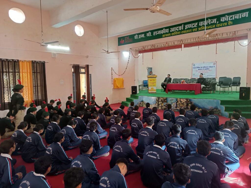 नैनीताल। उत्तराखण्ड राज्य विधिक सेवा प्राधिकरण, नैनीताल के दिशा निर्देशानुसार एवं अध्यक्ष जिला विधिक सेवा प्राधिकरण, नैनीताल / जिला न्यायाधीश प्रशांत जोशी के निर्देशन में सिविल जज (सी०डि०) / सचिव, जिला विधिक सेवा प्राधिकरण, नैनीताल पारुल थपलियाल के द्वारा पी एम श्री राजकीय आदर्श इंटर कालेज,कोटाबाग नैनीताल के राष्ट्रीय मतदाता दिवस पर विधिक साक्षरता एवं जागरुकता शिविर का आयोजन किया गया जिसमें सर्वप्रथम डॉ0 भवतोष भट्ट जी द्वारा अतिथि का स्वागत कर कार्यक्रम का शुभारंभ किया गया तत्पश्चात् प्रधानाचार्य हरीश चंद्र बिनवाल द्वारा राष्ट्रीय दिवस के उपलक्ष्य में जानकारी उपलब्ध कराई गई।शिविर को आगे बढ़ते हुए सचिव द्वारा मतदाता दिवस पर विद्यार्थीयों को किस प्रकार से मतदान करना चाहिए, मतदान करना हमारा कर्तव्य है तथा मतदान करते वक्त ध्यान देने वाली बातों के विषय में जानकारी दी गई। शिविर में जिला विधिक सेवा प्राधिकरण के कार्यकलाप के सम्बन्ध में जानकारी दी एवं निशुल्क विधिक सहायता प्राप्त करने की पात्रता की जानकारी उपलब्ध कराई गई। शिविर में (पीड़ित प्रतिकार योजना 2020)जो पीड़ितों के न्याय और सहायता में एक महत्वपूर्ण प्रगति का प्रतिनिधित्व करती है। शिविर में (मोटर एक्सीडेंट क्लेम) सड़क दुर्घटना में घायल व्यक्ति या मृतक के परिजनो को बीमा कंपनी या मोटर दुर्घटना दावा न्यायाधिकरण(MACT) से मिलने वाली आर्थिक सहायता है विषय में विधिक जानकारी उपलब्ध कराई है।