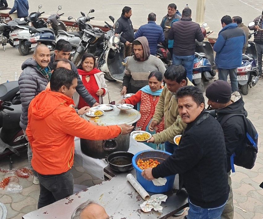 नैनीताल। सरोवर नगरी में नगर पालिका प्रांगण मुख्य गेट के पास भाजपा के वरिष्ठ नेता अरविंद पडियार युवा नेता मोहित रौतेला, संतोष कुमार सभासद भगवत रावत द्वारा माघ माह के महीने के चलते खिचड़ी प्रसाद का आयोजन किया गया। इस दौरान पालिका अध्यक्ष डॉक्टर सरस्वती खेतवाल समाजसेवी का मुन्नी तिवारी सहित अन्य गणमान्य स्थानीय नागरिकों और पर्यटक द्वारा खिचड़ी प्रसाद ग्रहण किया गया। इस दौरान भाजपा नेता अरविंद परियार ने माघ माह की सभी को बधाई और शुभकामनाएं दी है।