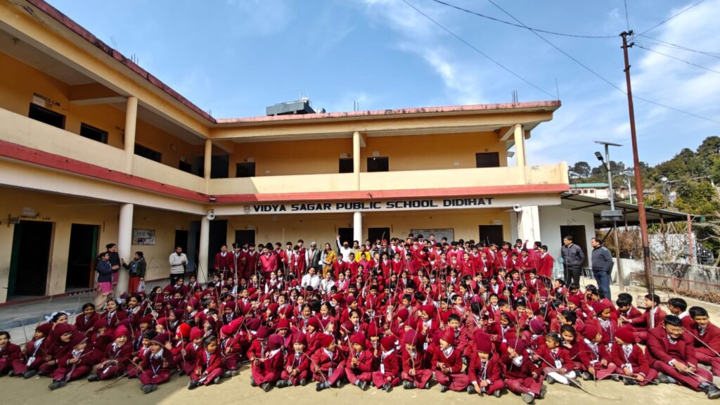 पौधारोपण अभियान के 574 वे दिन पौधारोपण को विद्यालयों से जोडऩे के कार्यक्रम मेरा पौधा मेरा परिवार के तहत डीडीहाट के विद्यासागर पबलिक स्कूल के गुरुजनों तथा छात्र छात्राओं को पौधा रोपण अभियान से जोड़ते हुए पौधे वितरित किए गए। दिनेश गुरु रानी द्वारा गुरुजनो व छात्र.छात्राओं को हिमालय बचाओ अभियान के तहत शपथ दिलाई। पौधारोपण अभियान के तहत आज विद्यासागर पबलिक स्कूल के प्रबंधक प्रधानाचार्य रेनू भंडारी कार्की का जन्मदिन भी पौधारोपण के साथ मनाया गया। रेनू भंडारी कार्की ने कहा कि वह सौभाग्यशाली हैं कि उनका जन्मदिन आज पौधारोपण के साथ मनाया जा रहा है ।उन्होंने पौधारोपण अभियान की सराहना करते हुए कहा कि इस अभियान से छात्र.छात्राओं को जोडऩा सराहनीय है। अब प्रत्येक छात्र.छात्रा का कर्तव्य बन जाता है कि वह पौधे का संरक्षण करें। कार्यक्रम में उद्यान विभाग डीडीहाट द्वारा ५००0 पौधे वितरित किए गए। गुरुरानी ने कहा कि छात्र.छात्राए इन पौधों का वृक्ष बनने तक संरक्षण करेंगे।