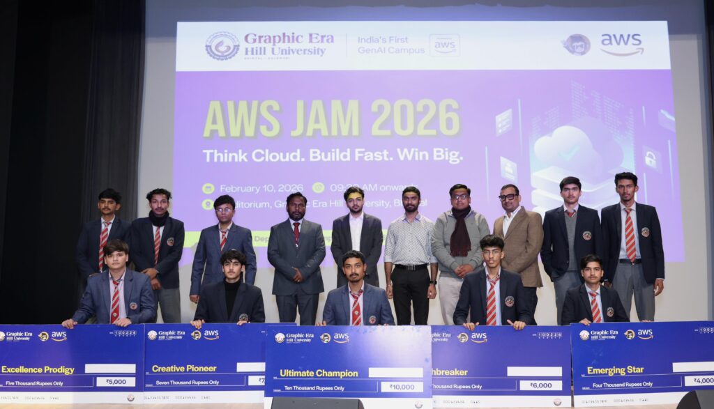 भीमताल नैनीताल। ग्राफि क एरा हिल यूनिवर्सिटी भीमताल कैंपस द्वारा अमेजऩ वेब सर्विसेज (एडबलूएस) के सहयोग से मंगलवार को एडबलूएस जेएएम-२०२६ का सफ ल आयोजन किया गया। इस गेम आधारित कलाउड कंप्यूटिंग प्रतियोगिता में देशभर से ४८० से अधिक प्रतिभागियों ने उत्साहपूर्वक भाग लिया। यह कार्यक्रम भीमताल कैंपस में आयोजित होने वाला पहला एडबलूएस जेएएम रहा जिसने विश्वविद्यालय की उद्योग उन्मुख तकनीकी शिक्षा की दिशा में एक महत्वपूर्ण कामयाबी को दर्शाया।