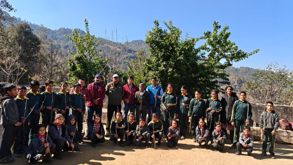 पौधारोपण अभियान के 577वे दिन पौधारोपण को विद्यालयों से जोड़ने के कार्यक्रम मेरा पौधा मेरा परिवार के तहत डीडीहाट के प्राथमिक विद्यालय ओगला, राजकीय पूर्व माध्यमिक विद्यालय सूनाकोट प्राथमिक विद्यालय पयाकोट में गुरुजनो व छात्र-छात्राओं को हिमालय बचाओ अभियान के तहत शपथ दिलाई गई। साथ ही छात्र-छात्राओं को पौधे वितरित किए गए। छात्र-छात्राएं अब इन पौधों को अपने घरों के परिसर में रोपित करेंगे। व वृक्ष बनने तक इसका संरक्षण करेंगे। दिनेश गुरुरानी ने कहा कि उद्यान विभाग डीडीहाट के माध्यम से पौधे दिए गए हैं उन्होंने उद्यान विभाग व सामाजिक कार्यकर्ता विपिन जोशी का आभार प्रकट किया। कार्यक्रम में राजकीय प्राथमिक विद्यालय ओगला के पुष्कर दत्त पांडे ,मोहन चंद्र कापड़ी, प्राथमिक विद्यालय सूनाकोट के नवीन सिंह कफलिया, नीरू जोशी प्रयाग सिंह कन्याल ,शेर सिंह, पुष्कर सिंह मुनोला, प्राथमिक विद्यालय पयाखेत की आशा कफलिया उपस्थित रही।
