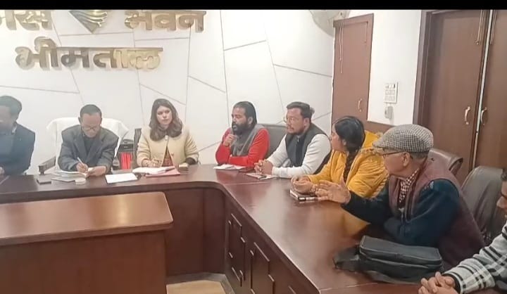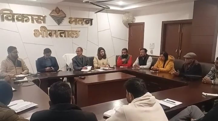 भीमताल नैनीताल। भीमताल, नौकुचियाताल, सातताल झीलों के सौन्दर्यीकरण को लेकर आज शुक्रवार को विकास भवन में मुख्य विकास अधिकारी अरविंद पांडेय के दिशानिर्देशों पर जिला विकास अधिकारी गोस्वामी ने झीलों के सौंदर्यीकरण एवं संरक्षण में संबंधित झील से जुड़े दर्जन भर विभागों शहर के सामाजिक वर्गों से जुड़े लोगों के साथ समीक्षा बैठक की, वन विभाग, प्राधिकरण, जिला ग्राम्य अभिकरण, कृषि, उद्यान, पर्यटन, उरेडा, सिंचाई, खंड विकास अधिकारी, नगर पालिका, जिला पंचायत आदि विभागों से जुड़े अधिकारियों से सामाजिक कार्यकर्ता पूरन बृजवासी ने सभी झीलों के सौन्दर्यीकरण के लिए बड़ी उच्च कोटि, कुमाऊँनी शैली में योजना तैयार करने की मांग की, झीलों की सुरक्षा हेतु प्रस्ताव तैयार करने की मांग की, बी.डी. पलड़िया ने कहाँ भीमताल झील की गाद मिट्टी निकासी कराये विभाग झील में आने वाले नालों की नियमित सफाई करे विभाग, ग्राफिक गेरा कॉलेज प्रतिनिधि डॉ फरहा खान ने सभी अधिकारियों से सभी झीलों के नियमित कूड़ा सफाई, प्लास्टिक मुक्त झीलों को रखने की मांग साथ ही सभी झीलों के चारो ओर अच्छी रैलिंग एवं लाइटिंग लगाने को कहाँ, क्षेत्र पंचायत सदस्य पंकज सूर्या ने सात ताल से नियमित कूड़ा सफाई के लिए गाड़ी कर्मचारियों की तैनाती की मांग की, रमेश पलड़िया ने बाग के आतंक से निजात दिलाने की मांग की साथ ही ग्रामीण रास्तो पर सौर ऊर्जा लाइट लगाने की मांग की, डीडीओ गोपाल गिरी गोस्वामी ने उद्यान विभाग से कहा डैम समीप पार्क, अन्य पार्क, सभी झीलों किनारे फूल शोदार सौंदर्य करने पर कार्य करे, वन विभाग, सिचाई विभाग, नगर पालिका झील किनारे झील में गिरे लकड़ी, पेड़ों को दौरा कर चयनित कर शीघ्र हटाए, झील में ज़मी गंदगी को हटाने के लिए सिंचाई विभाग कार्यवाही करे, साथ ही झीलों के संबंध में सरकार एवं केंद्र की चल रही योजना को झीलों से जोड़ने पर जोर दे, झीलों को योजनाओं का लाभ दिलाने पर सभी विभाग दौरा कागजी कार्य कर रिपोर्ट विकास भवन कार्यालय को माह भीतर भेजे l पूरन बृजवासी ने कमल ताल एवं नल दमयन्ती ताल के लिए भी सौंदर्यीकरण एवं स्वैच्छिक कार्य करने पर जोर दिया जिस पर नगर पालिका एवं सिचाई विभाग ने योजना पर कार्य चलने की बात बताई, बैठक में सामाजिक कार्यकर्ता पूरन बृजवासी, बी.डी. पलड़िया, अधिशासी अधिकारी नगर पालिका राहुल कुमार,डॉ फरहा खान, जिला पर्यटन अधिकारी अतुल भंडारी, सिंचाई विभाग एसडीओ मन मोहन सिंह, पंकज सूर्या, शुभम प्रधान, रमेश पलड़ीया, महेंद्र धौनी आदि मौजूद थे।