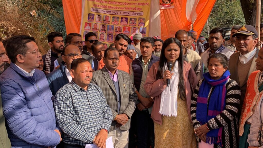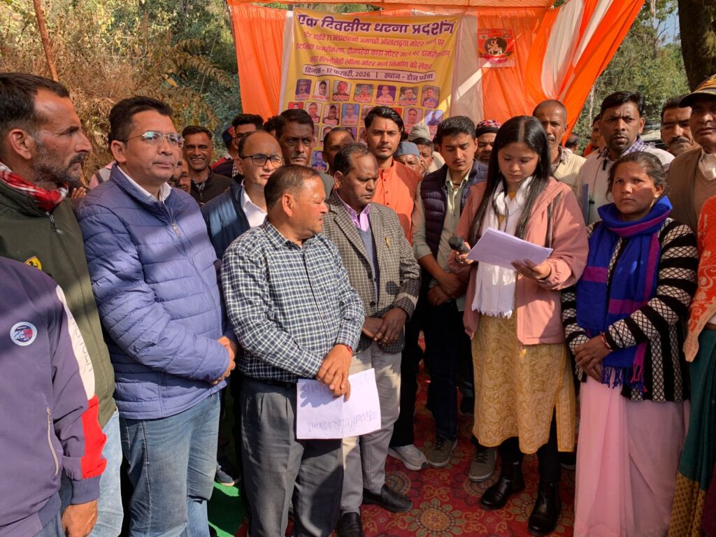नैनीताल/कोटाबाग: उत्तराखंड के नैनीताल जनपद के अंतर्गत डॉन परेवा क्षेत्र में ग्रामीणों ने सड़कों की खस्ताहाल स्थिति और सरकार की वादाखिलाफी के खिलाफ मोर्चा खोल दिया है। मंगलवार (17 फरवरी 2026) को क्षेत्रवासियों ने एक दिवसीय धरना-प्रदर्शन कर तहसीलदार नैनीताल मनीषा विष्ट के माध्यम से मुख्यमंत्री पुष्कर सिंह धामी को संबोधित ज्ञापन प्रेषित किया।