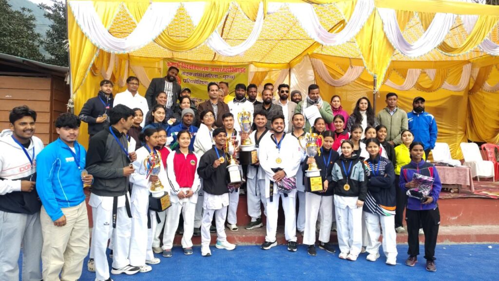 नैनीताल। सरोवर नगरी में डीएसबी परिसर कुमाऊँ विश्वविद्यालय द्वारा आयोजित अंतर महाविद्यालय ताइक्वांडो (महिला/पुरुष) प्रतियोगिता 2025-26 का सफल आयोजन डीएसए ग्राउंड, मल्लीताल में हुआ। प्रतियोगिता का भव्य शुभारंभ मुख्य अतिथि प्रो. नीता बोरा शर्मा निदेशक डीएसबी परिसर द्वारा किया गया, जबकि समापन एवं पुरस्कार वितरण समारोह में मुख्य अतिथि के रूप में डॉ. ललित तिवारी विभागाध्यक्ष वनस्पति विज्ञान एवं प्रभारी डी एस डब्ल्यू द्वारा किया गया ।
