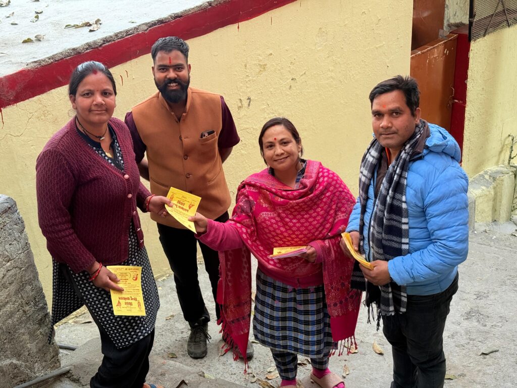 हिंदू विराट सम्मेलन के सफल आयोजन को लेकर भाजपा कार्यकर्ता कर रहे हैं घर-घर जाकर प्रचार प्रसार