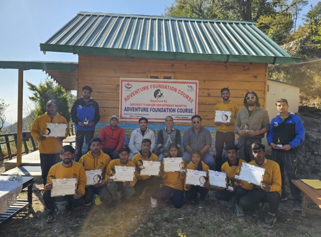 साहसिक पर्यटन को बढ़ावा देने हेतु जनपद नैनीताल की जिला योजना वर्ष 2024-25 के अंतर्गत 7 दिवसीय बेसिक एडवेंचर कोर्स का आज शनिवार को समापन किया गया। ज़िला पर्यटन अधिकारी अतुल भंडारी ने बताया कि आज सभी को प्रमाण पत्र दिये गए। जिसमे अनुसूचित जाति के आठ युवक एवं दो युवती है।