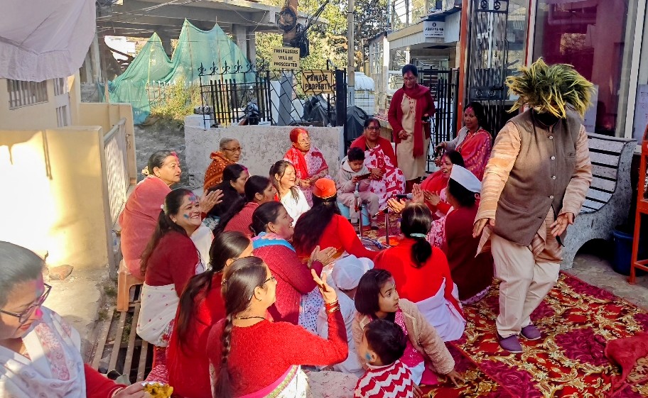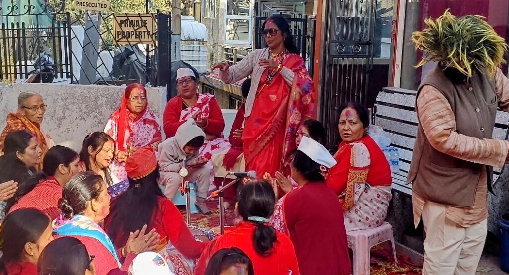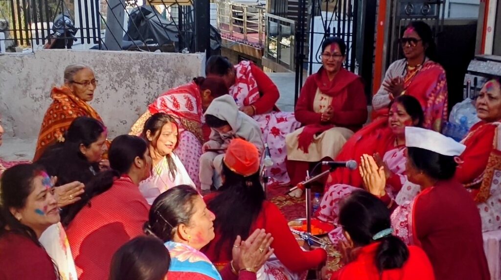 नैनीताल। सरोवर नगरी में होली पर्व की धूम है और आज सोमवार को तल्लीताल नया बाजार स्थित मां वैष्णो देवी मंदिर प्रांगण में होली मिलन कार्यक्रम का आयोजन किया गया जिसमें की महिला होलियारों द्वारा होली गायन कर समा बांध दिया। एक से बढ़कर एक होली गीत गाकर और नृत्य कर होली मिलन में चार चांद लगाती है। इस दौरान मंदिर कमेटी द्वारा प्रसाद का भी वितरण किया गया। इस मौके पर ममता शाह, प्रभा जोशी, प्रभा बिष्ट, अनीता शाह, बिना शर्मा, आरती कपिल, नीला कपिल, कनकलता शाह, किशोरी जोशी, हेमा शाह, सुनीता शाह, कविता गोस्वामी, गीता नैनवाल शाहिद अन्य महिला होलियार मौजूद थे।