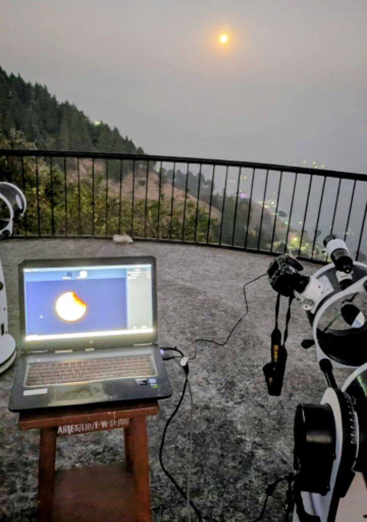 एरीज के विज्ञान क्रेन्द्र से चंद्र ग्रहण की लाइव स्ट्रीमिंग कार्यक्रम हुआ आयोजित