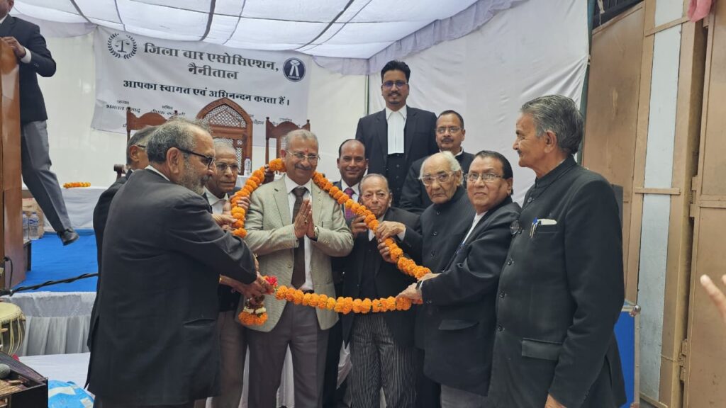 नैनीताल। सरोवर नगरी स्थित जिला बार एसोसिएशन में आयोजित सम्मान समारोह में उच्च न्यायालय के न्यायमूर्ति आलोक मेहरा ने वकालत के क्षेत्र में 50 वर्ष पूर्ण करने वाले वरिष्ठ अधिवक्ताओं को शॉल ओढ़ाकर एवं सम्मान-पत्र प्रदान कर सम्मानित किया कार्यक्रम में पहुंचने पर जिला जज प्रशांत जोशी बार एसोसिएशन के अध्यक्ष भगवत प्रसाद और सचिव दीपक रुवाली सहित कार्यकारिणी सदस्यों ने न्यायमूर्ति मेहरा को पुष्पगुच्छ भेंट कर उनका स्वागत किया अधिवक्ताओं को संबोधित करते हुए न्यायमूर्ति आलोक मेहरा ने वरिष्ठ अधिवक्ताओं को बार की अनमोल धरोहर बताते हुए कहा कि उनका अनुभव मार्गदर्शन और कार्यशैली ही किसी भी बार की वास्तविक शक्ति होती है जिला बार को अपना घर बताते हुए उन्होंने अपने वकालत के दिनों को याद किया और अधिवक्ताओं के साथ पुरानी स्मृतियाँ साझा कीं उन्होंने कहा कि वकालत के दौरान उन्हें यहां बहुत कुछ सीखने का अवसर मिला और वरिष्ठ अधिवक्ताओं से उनका रिश्ता गुरु-शिष्य जैसा रहा है उनके मार्गदर्शन से ही उनके अनुभव और दृष्टिकोण का निर्माण हुआ उन्होंने कहा कि वरिष्ठ अधिवक्ताओं के अनुभव से नई पीढ़ी के अधिवक्ताओं को निरंतर सीखने की प्रेरणा मिलती है और यही परंपरा न्याय व्यवस्था को और अधिक मजबूत बनाती है बार एसोसिएशन के अध्यक्ष भगवत प्रसाद ने न्यायमूर्ति आलोक मेहरा का आभार व्यक्त किया वहीं सचिव दीपक रुवाली ने न्यायमूर्ति मेहरा के जीवन और व्यक्तित्व को अधिवक्ताओं के लिए प्रेरणादायी बताया। कार्यक्रम में उपाध्यक्ष शंकर सिंह चौहान वरिष्ठ अधिवक्ता हरिशंकर कंसल मनीष मोहन जोशी राजेश चंदोला प्रभात पांडेय राजेन्द्र कुमार पाठक ओंकार गोस्वामी ज्योति प्रकाश बोरा अरुण बिष्ट मंजू कोटलिया सबीना उस्मान प्रीति साह कैलाश जोशी गिरीश खोलिया बी के सांगुड़ी संजय त्रिपाठी भुवन जोशी पुलक अग्रवाल अजय बिष्ट राकेश सुयाल संजय सुयाल अनिल बिष्ट आनंद कनवाल बलवंत सिंह थलाल सुंदर मेहरा निखिल बिष्ट नीलेश भट्ट शिवांशु जोशी कमल चिलवाल नीरज गोस्वामी जयंत नैनवाल अनिता जोशी दीपक दत्त पांडेय मनीष कांडपाल गौरव कुमार शशांक कुमार प्रदीप प्रसाद दिग्विजय सिंह मेहरा गजेंद्र मेहरा मुन्नी आर्या किरन आर्या जया आर्या कामिनी गंगवार संध्या सहित न्यायाधीश व अधिवक्ता मौजूद रहे।