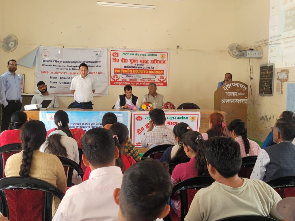 नैनीताल। सरोवर नगरी में क्षय रोग उन्मूलन कार्यक्रम के अंतर्गत टीवी मुक्त भारत अभियान पर कार्यशाला आयोजित क्षय रोग उन्मूलन कार्यक्रम के अंतर्गत टीवी मुक्त भारत अभियान के तहत एक दिवसीय संवेदीकरण कार्यशाला का आयोजन ब्लॉक भीमताल सभागार में किया गया। यह कार्यशाला नवनियुक्त ग्राम प्रधानों के लिए आयोजित की गई, जिसकी अध्यक्षता माननीय ब्लॉक प्रमुख श्री डॉ. हरीश बिष्ट जी द्वारा की गई।