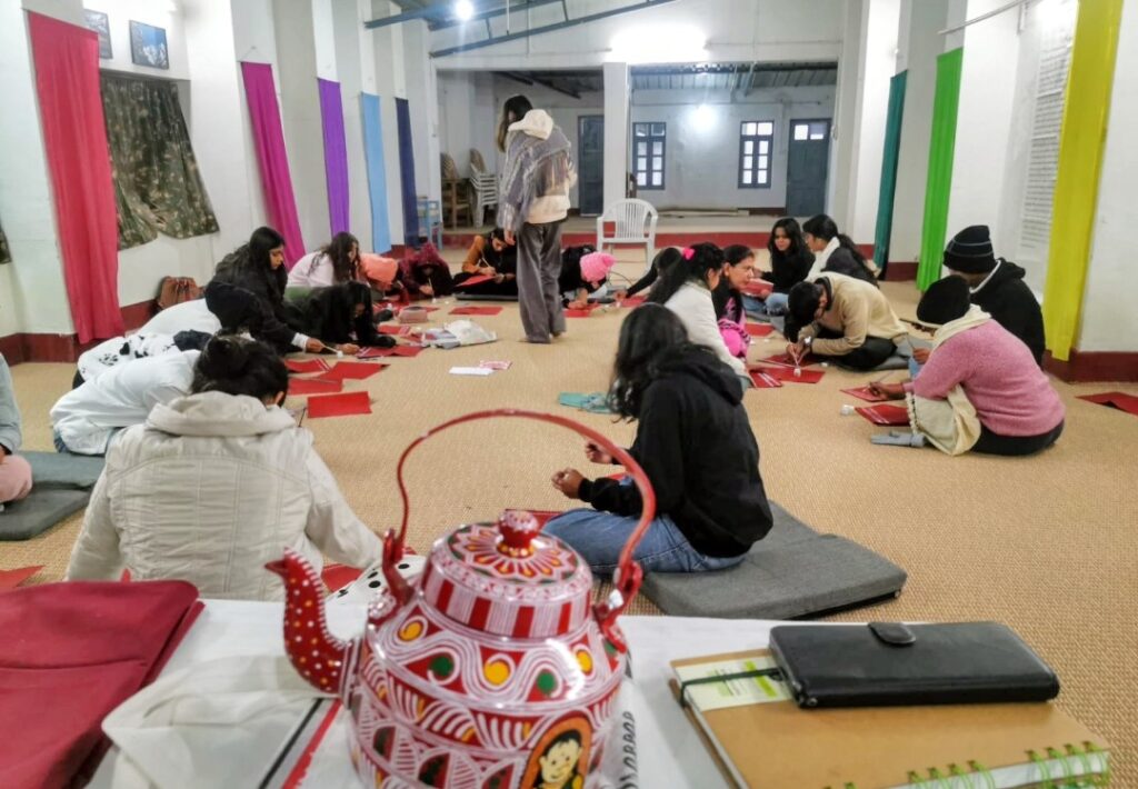 नैनीताल। सरोवर नगरी के अयारपाटा स्थित श्री अरविंदो आश्रम नैनीताल में स्कूल ऑफ डिज़ाइन, ऑरो यूनिवर्सिटी के छात्र-छात्राओं के लिए उत्तराखंड की समृद्ध लोक संस्कृति एवं पारंपरिक कला ‘ऐपण’ पर एक विशेष सत्र आयोजित किया गया। इस दौरान विद्यार्थियों को ऐपण की परंपरा, महत्व और उसकी विशिष्ट शैली से अवगत कराया गया, साथ ही उन्हें इसका व्यावहारिक प्रशिक्षण भी दिया गया। कार्यक्रम के अंतर्गत ऐपण पर एक दिवसीय कार्यशाला का आयोजन किया गया, जिसमें श्रीमती दीपा चौधरी एवं रेनू आर्या द्वारा अत्यंत कुशलता के साथ ऐपण की बारीकियां सिखाई गईं। विद्यार्थियों ने उत्साहपूर्वक भाग लेते हुए इस पारंपरिक कला को सीखने में गहरी रुचि दिखाई। इस कार्यशाला के सफल आयोजन में श्री अमित सुठा, आयुष मेहरा तथा सभासद मनोज साह जगाती का महत्वपूर्ण सहयोग रहा।