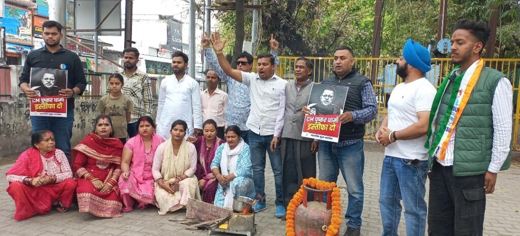 रसोई गैस का व्याप्त भारी संकट बढ़ती कीमतों कालाबजारी के विरोध युवा काग्रेस कार्यकर्ताओं ने