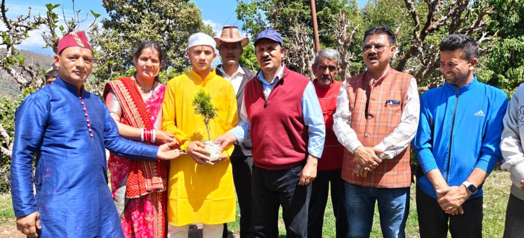नैनीताल। उत्तराखंड क्रांति दल अधिकारी कर्मचारी प्रकोष्ठ के कुमाऊं मंडल अध्यक्ष डीडीहाट विधानसभा से प्रत्याशी राज्य निर्माण सेनानी दिनेश गुरु रानी द्वारा राज्य में चलाया जा रहा अनूठा पौधारोपण अभियान आज 623 वे दिन भी जारी रहा। पौधारोपण अभियान के 623 वे दिन डीडीहाट के ओगला में होटल व्यवसाई राजेश अवस्थी ने अपने पुत्र युवराज अवस्थी के उपनयन संस्कार के अवसर पर एक पौधा धरती मां के नाम के तहत पौधारोपण किया। राजेश अवस्थी ने कहा कि उपनयन संस्कार के अवसर पर पौधारोपण करना उनका परम सौभाग्य है। वह समय-समय पर पौधारोपण करते रहते हैं कार्यक्रम में लोक निर्माण विभाग के कर्मचारी नेता रहे राम दत्त अवस्थी ने कहा कि पर्यावरण संरक्षण के लिए पौधारोपण करना जरूरी है। कार्यक्रम में मधु अवस्थी, गंगा दत्त अवस्थी, तुलसी देवी,अजय अवस्थी, धीरेंद्र जिमवाल, डीडीहाट क्रिकेट एसोसिएशन के सचिव सुनील शाह ,प्रयाग दत्त ,भागीरथ अवस्थी, नंदकिशोर, गोपाल दत्त,सौरभ पांडे सहित स्थानीय लोग उपस्थित रहे।