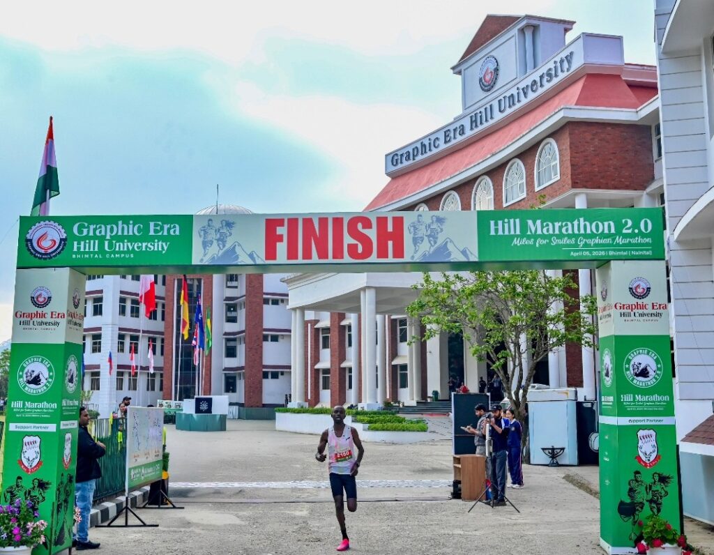 बता दें सुबह पहाडिय़ों पर छाए बादलों के बीच यह आयोजन ऐसे शुरू हुआ मानो आसमान स्वयं इस विशेष अवसर का साक्षी बनने आया हो। पिछले वर्ष किए गए वादे को और अधिक जीवंत एवं समावेशी रूप में इस बार पूरा किया गयाए जहां हिल मैराथन पूरे उत्साह के साथ प्रारंभ हुई।कार्यक्रम का शुभारंभ भीमताल परिसर के निदेशक द्वारा २१ किमी दौड़ को सुबह ६ बजे हरी झंडी दिखाकर किया गया। इसके पश्चात ७ बजे भारतीय शहीद सैनिक विद्यालय नैनीताल के प्रधानाचार्य बिशन सिंह मेहता ने ५ किमी दौड़ को रवाना किया वहीं रन फ ॉर फन की शुरुआत प्रसिद्ध क्षेत्रीय सोशल मीडिया लुएंसर बॉबी भकुनी ने की।ग्राफिक एरा हिल यूनिवर्सिटी भीमताल परिसर से शुरू हुई इस मैराथन में देश विदेश से आए प्रतिभागियों के साथ सेना वायुसेना व एनसीसी के प्रतिनिधि और विभिन्न विद्यालयों के छात्र छात्राओं ने उत्साहपूर्वक भाग लिया। रंग बिरंगी टी शट्र्स में सजे धावक जब सुरमय पहाड़ी मार्गों पर दौड़े तो पूरा परिसर और नगर उत्साह से जीवंत हो उठा। हर सीटी और तालियों की गूंज ने धावकों में नई ऊर्जा का संचार किया वहीं घुड़सवारों और बाइक राइडर्स द्वारा मार्ग पर मैराथन के झंडे लहराते हुए प्रतिभागियों का उत्साहवर्धन किया गया जिससे आयोजन और भी आकर्षक बन गया।