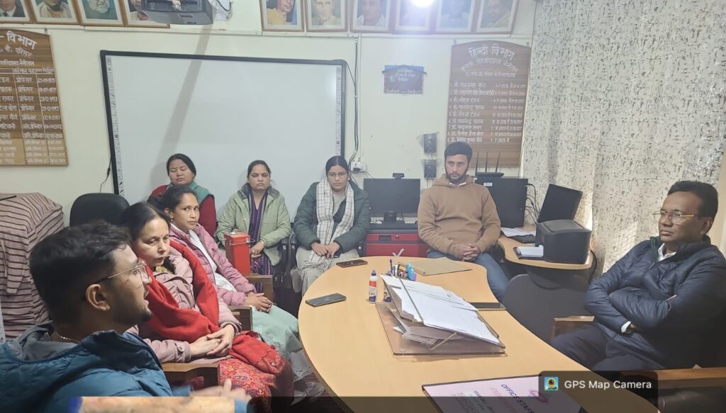 नैनीताल। सरोवर नगरी में हिंदी एवं अन्य भारतीय भाषा विभाग, डी. एस. बी. परिसर, नैनीताल में शोधार्थी हिमांशु विश्वकर्मा की उत्तराखंड भाषा संस्थान के ‘युवा कलमकार सम्मान’ 2026 से पुरस्कृत कहानी ‘बावर की वनकन्या’ पर साहित्यिक परिचर्चा का आयोजन किया गया। इस अवसर पर विभाग के समस्त प्राध्यापकों एवं शोधार्थियों ने हर्ष व्यक्त करते हुए उन्हें हार्दिक बधाई दी। परिचर्चा के दौरान हिन्दी के विभागाध्यक्ष प्रो. शिरीष कुमार मौर्य ने कहानी के रचनात्मक संदर्भों को स्पष्ट करते हुए जौनसार-बावर क्षेत्र की विशिष्ट सामाजिक-सांस्कृतिक पृष्ठभूमि पर प्रकाश डाला। उन्होंने कहा कि इस क्षेत्र की कई कुप्रथाएं सामाजिक यथार्थ का हिस्सा रही हैं, हिमांशु विश्वकर्मा की यह कहानी इसी संवेदनशील और जटिल यथार्थ को अत्यंत मुखरता और ईमानदारी के साथ सामने लाती है। प्रो. मौर्य ने उपस्थित शोधार्थियों एवं प्राध्यापकों को रचनात्मक लेखन तथा समीक्षा, शोध-लेखन व आलोचनात्मक दृष्टि विकसित करने के लिए प्रेरित किया। उन्होंने हिमांशु विश्वकर्मा से कहा कि किसी भी रचना का महत्व केवल पुरस्कार से नहीं, बल्कि एक सक्षम संपादकीय दृष्टि से गुजरकर प्रतिष्ठित मंच पर प्रकाशित होने से अधिक बढ़ता है। इस अवसर पर मेधा नैलवाल ने हिमांशु विश्वकर्मा के रचनात्मक संघर्ष को रेखांकित करते हुए कहा कि वे बहुमुखी प्रतिभा के धनी हैं और कविता, कहानी, अनुवाद तथा आलोचनात्मक शोध जैसे विविध क्षेत्रों में समान रूप से सक्रिय हैं। विभाग के सभी सदस्यों ने हिमांशु विश्वकर्मा उज्ज्वल भविष्य की कामना की।