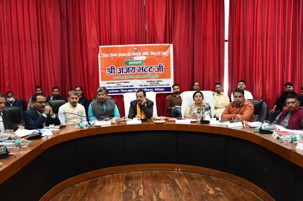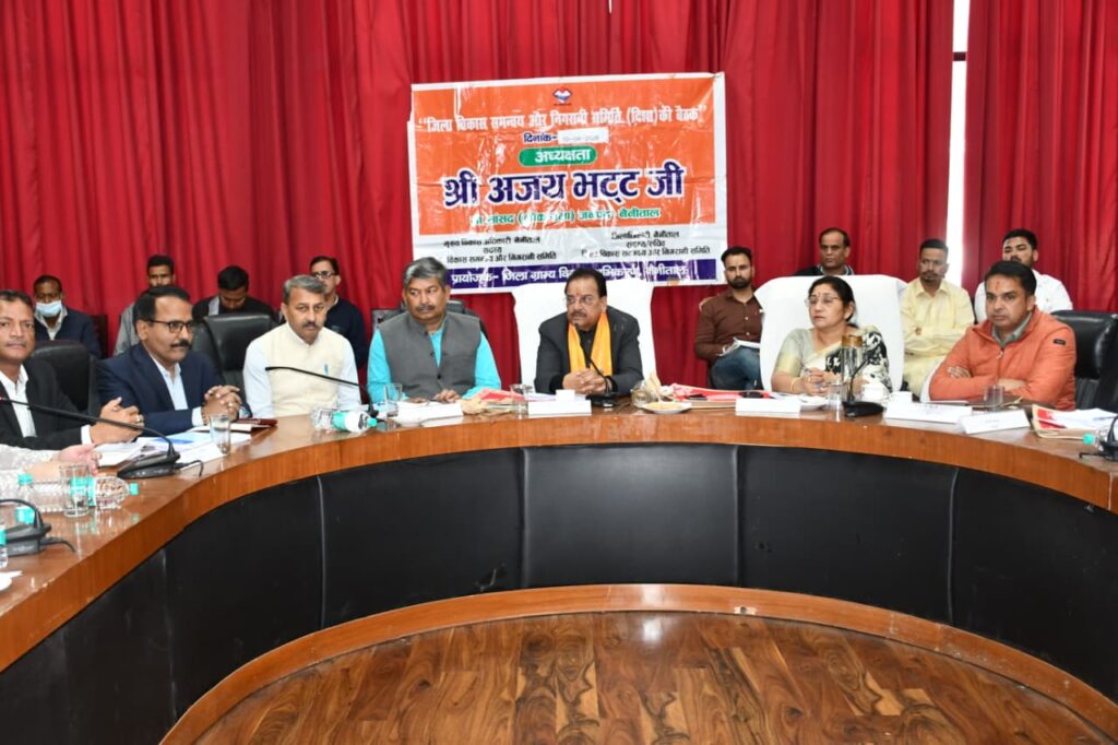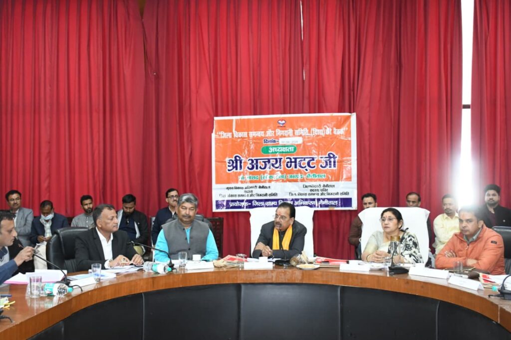 जनपद में प्रधानमंत्री आवास योजना में 2556 आवास स्वीकृत हुये थे जिसके अन्तर्गत 2529 आवासोें का आवंटन किया जा चुका है। द्वितीय चरण मेें लगभग 11 हजार आवास स्वीकृति हेतु केन्द्र सरकार को अनुमोदन भेजा गया है। पशुपालन विभाग की समीक्षा के दौरान कहा कि जिस प्रकार से जनता के लिए 108 सेवा स्वास्थ्य विभाग द्वारा प्रदान की जाती है उसी प्रकार से 1962 सेवा पशुपालन विभाग द्वारा बीमार पशुओं आदि के लिए प्रदेश सरकार द्वारा निशुल्क सेवा प्रदान की रही है। उन्होंने सभी जनप्रतिनिधियों से 1962 सेवा का प्रचार प्रसार कर लोगोें को अधिक से अधिक लाभ प्रदान हो सके। शिक्षा विभाग की समीक्षा के दौरान सांसद द्वारा मुख्य शिक्षा अधिकारी को निर्देश दिये कि जनपद में जो स्कूल जीर्णशीर्ण है उन्हें ध्वस्तीरण हेतु प्रस्ताव भेजा जाएं और उन स्थानों पर नये भवन निर्माण हेतु डीपीआर तैयार कर ली जाए। जनपद में एलपीजी गैस की वर्तमान स्थिति व वितरण की समीक्षा के दौरान कहा कि जनपद में कोई गैस की कमी नही है लोगों को आसानी से सुविधा उपलब्ध कराई जा रही है। जिला पूर्ति अधिकारी ने बताया कि बैकलॉग होने से समस्या उत्पन्न हो गई थी जिसका समाधान सप्ताह में हो जायेगा। जलजीवन मिशन की समीक्षा के दौरान उन्होंने कहा कि जलजीवन मिशन में धनराशि का आवंटन केन्द्र सरकार द्वारा नही होने पर कार्य धीमी गति से हुये जिसके लिए उन्होंने संसद सत्र में इस समस्या को उठाया था केन्द्र सरकार द्वारा राज्य को धनराशि का आवंटन कर दिया गया है। उन्होंने नोडल जलजीवन मिशन के अधिकारी को निर्देश दिये कि जिन ठेकेदारों द्वारा कार्यो में लापरवाही की जा रही है उनके खिलाफ कठोर कार्यवाही कर ब्लैक लिस्टेड किया जाए और नये ठेकेदारों को कार्य दिया जाए। बैठक में अध्यक्ष जिला पंचायत दीपा दरम्वाल,मेयर हल्द्वानी गजराज सिंह बिष्ट उत्तराखंड सरकार में दाईत्वधारी दीपक मेहरा, शान्ति मेहरा,दिनेश आर्य, भावना मेहरा, भाजपा जिलाध्यक्ष प्रताप बिष्ट ब्लाक प्रमुख डा हरीश बिष्ट, केडी रूवाली,मनीषा जन्तवाल, अंकित साह,दीप कुमार के साथ ही जिलाधिकारी ललित मोहन रयाल, मुख्य विकास अधिकारी अरविन्द कुमार पाण्डे सदस्य दिशा कमला आर्य, गोपाल सिंह रावत,भुवन जोशी, मनोज जोशी, पार्षद धीरज कुमार के साथ ही विभिन्न विभागों के अधिकारी व अन्य उपस्थित रहे।