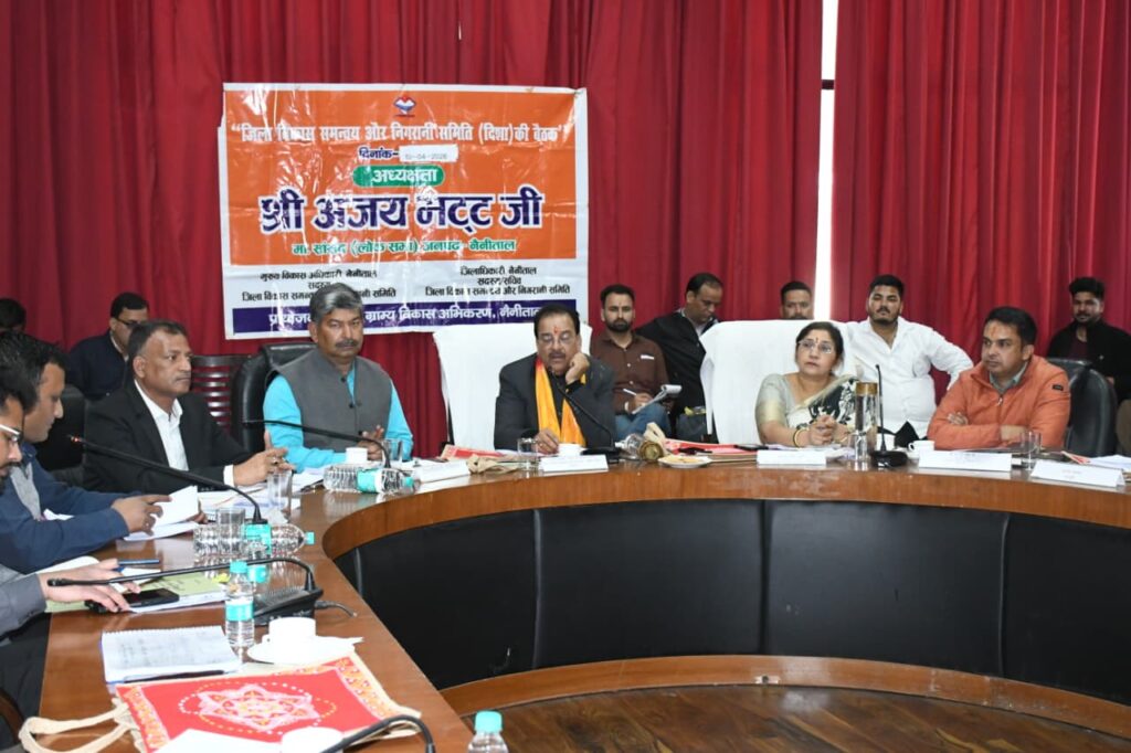 नैनीताल। सरोवर नगरी में राज्य अतिथि सभागार में सांसद अजय भट्ट ने विकास समन्वय एवं निगरानी समिति (दिशा) की बैठक लेते हुए कहा कि अधिकारी केन्द्र सरकार की योजना कार्याे को गम्भीरता से लेते हुए कार्याे को समयबद्ध तरीके से पूर्ण करें और जन कल्याणकारी योजनाओं का लाभ अंतिम छोर तक पहुँचाने के लिए लक्ष्यों के अनुरूप कार्यों को समय पर पूर्ण करें। क्षेत्रीय सांसद ने मुख्य रूप से पेयजल, सड़क, शिक्षा और स्वास्थ्य विभाग द्वारा संचालित योजनाओं पर विशेष जोर देते हुए उन्हें समय पर पूरा करने को कहा, ताकि ग्रामीण और शहरी क्षेत्रों में आम जनता को योजनाओं का सीधा लाभ मिल सके। सांसद भट्ट ने कहा कि सभी अधिकारी केन्द्र संचालित योजनाओं व विकास कार्याे की जानकारी सभी जनप्रतिनिधियों को भी दें और योजना कार्याे का शुभारम्भ एवं लोकार्पण क्षेत्रीय जनप्रतिनिधियों के माध्यम से कराएं ताकि सरकार द्वारा संचालित योजनाओं की जानकारी जनता तक जाये। पर्वतीय क्षेत्रों की विभिन्न सडकों की खराब गुणवत्ता के संबंध में सांसद श्री भटट ने कहा कि जो सड़कें मानकोें के अनुरूप नही बनी है उन सडकों की जांच की जाय इस संबंध में उन्होंने संबंधित को निर्देश दिये । उन्होंने कहा गुणवत्ता के साथ कोई समझौता नही किया जायेगा। बैठक में सांसद ने ग्रामीण विकास,कृषि एवं किसान कल्याण, पंचायती राज, आवास एवं शहरी, पशुपालन, डेयरी, स्वास्थ्य, पेयजल, कौशल विकास, सडक, खेल, पर्यटन, दीनदयाल योजना पीएमजीएसवाई,लोनिवि, सांसद आदर्श ग्राम योजना आदि विभागों की समीक्षा की।