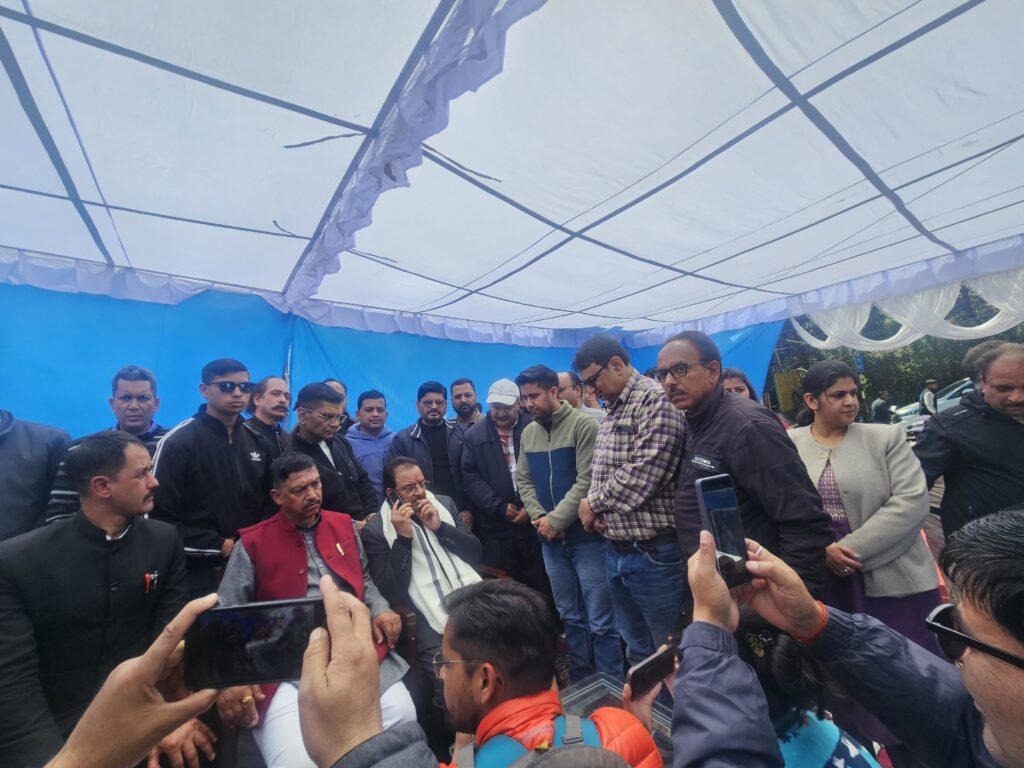 नैनीताल। सरोवर नगरी के प्रांतीय खंड प्रांगण में उत्तराखंड डिप्लोमा इंजीनियर महासंघ पिछले 19 दिनों से अपनी 27 सूत्री मांगों को लेकर धरना प्रदर्शन कर रहे हैं आज शुक्रवार 19वें दिन भी इंजीनियरों द्वारा धरना प्रदर्शन के दौरान भ्रमण पर पहुंचे सांसद अजय भट्ट ने अपनी मांगों को लेकर ज्ञापन सौंपते हुए तत्काल पूरा करने की मांग की है। जिसमें सांसद अजय भट्ट द्वारा त्वरित संज्ञान लेते हुए शासन में सचिव स्तर पर दूरभाष से वार्ता की और जल्द ही डिप्लोमा इंजीनियर्स की समस्याओं का समाधान किये जाने हेतु कहा और उनके द्वारा मुख्यमंत्री उत्तराखंड सरकार से भी इस संबन्ध वार्ता करने हेतु आश्वासन दिया गया। उसके पश्चात नैनीताल शहर में वर्ष 2018 में आयी आपदा से लोअर मॉलरोड में क्षतिग्रस्त सड़क जिसमें वर्तमान में माइक्रो पाइलिंग का कार्य चल रहा था जिसको अभियंताओं ने कार्यस्थल में जा कर रुकवा दिया गया। महासंघ के सदस्यों ने आहवाहन किया कि वर्तमान में जब मांगो को माना जायेगा तभी महासंघ अपनी हड़ताल को समाप्त करेगा। हड़ताल से सभी स्थानों पर सीधा असर आम जनमानस को पड़ा है जिसकी सुध वर्तमान की सरकार द्वारा बिलकुल नहीं ली जा रही है। इस मौके पर ई दीप चौधरी, ई विपिन पुरोहित, ई बी पी उनियाल, ई राजेंद्र गिरी, ई तुलाराम टम्टा, ई गोविन्द सिंह जनोटी, ई वेद प्रकाश, ई जी बी जोशी, ई कैलाश रौतेला, ई नीरज तिवारी, ई भुवन सिंह बोरा, ई राजेश कुमार आर्य, ई विजय सिंह बिष्ट, ई विवेक सिंह ई वंदना, ई मनोज फर्त्याल, ई जी सी जोशी, ई गायत्री तिवारी, ई राकेश मोहन, ई शंकर आर्या, ई शिवानी पाल, ई हरीश भट्ट, ई सत्यजीत सरकार, ई अमिता सहित अन्य इंजीनियर मौजूद थे।