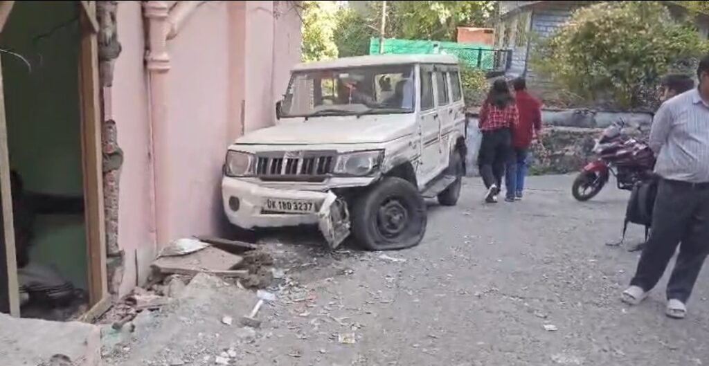 नैनीताल। सरोवर नगरी में दोपहर लगभग 2:00 बजे तल्लीताल ठंडी सड़क पुरानी जिला जज निवास के पास मोड पर कचहरी की तरफ से नीचे आ रही पिकअप संख्या यूके 01 3126 के अचानक ब्रेक फेल होने की वजह से रोड पर ख़डी बोलेरो कार संख्या यूके 018 डी 3237 से टकराकर मोड पर विजय शाह के मकान के निचले तल पर मुख्य द्वार से टकरा गई और एक बड़ी दुर्घटना होने से टल गई पिकअप मकान के मुख्य द्वार के टकराने से चौखट दरवाजा और दीवार क्षतिग्रस्त हो गई और एक बड़ी दुर्घटना होने से टल गई उस समय रोड पर कोई व्यक्ति नहीं था नहीं तो एक बड़ी दुर्घटना हो सकती थी बता दें उस मकान में जिला विकास प्राधिकरण के जैई विपिन कुमार अपने परिवार के साथ रहते हैं वह तो गनीमत रही के बच्चे स्कूल थे और उनकी धर्मपत्नी अपने कमरे पर तेज आवाज सुनकर पत्नी घबरा गई और बाहर आकर देखा तो मंजर कुछ और था एक पिकअप गाड़ी उनके मकान से टकराई हुई थी। तत्काल लोगों ने पिकअप में सवार चालक और अन्य लोगों को बाहर निकाला और घटना की सूचना पुलिस को दी वह तो गनीमत रही के सभी बाल-बाल बच गए। बता दे घटना लगभग दोपहर 2:00 बजे की है और बोलोरो वाहन के स्वामी चक्रधर भट्ट ने थाना तल्लीताल में घटना की तहरीर देकर नुकसान की भरपाई की मांग की बता दें पिकअप स्वामी मदन राम आर्य ने बोलेरो स्वामी श्री भट्ट को वाहन को सही करने का भरोसा दिया और दोनों में आपसी समझौता हो गया।