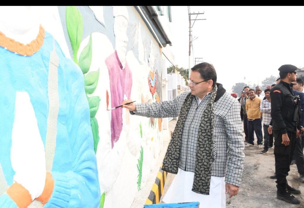सड़कों का सौंदर्यीकरण स्थानीय कुमाऊनी संस्कृति में भित्तिचित्र बनाकर सजाया