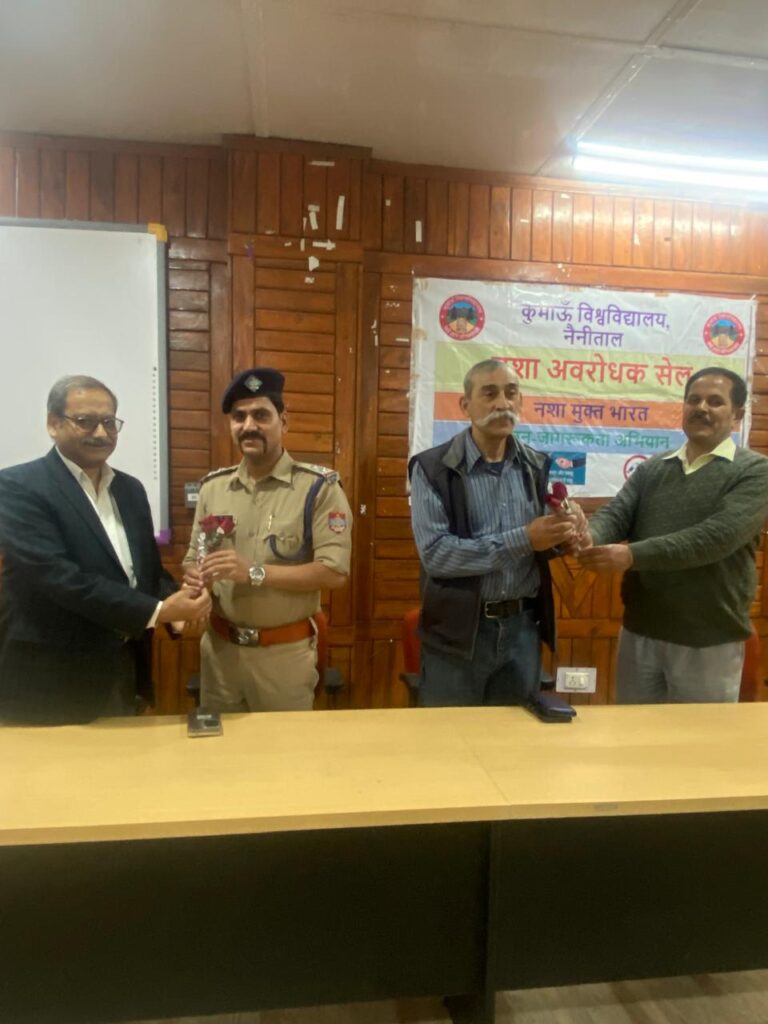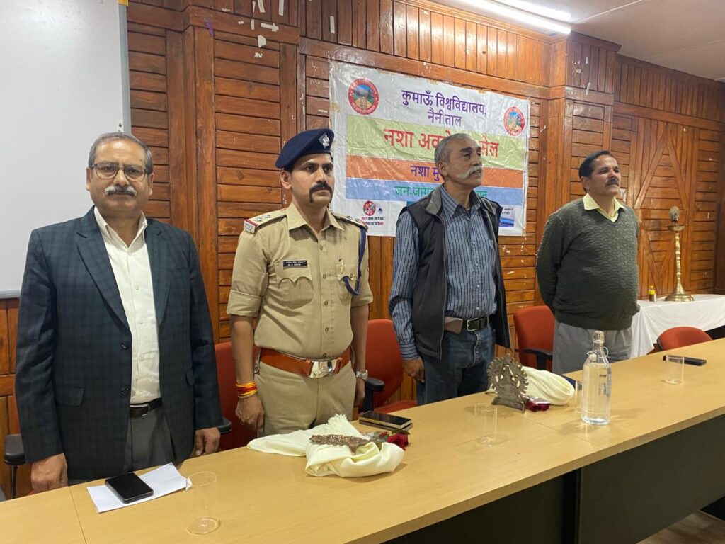 नैनीताल। सरोवर नगरी में कुमाऊं विश्वविद्यालय के डी एस बी परिसर में आज एंटी ड्रग रैली तथा एंटी ड्रग व्याख्यान का आयोजन किया गया । रैली को हरी झंडी दिखाकर कुलपति प्रोफ़ेसर दीवान एस रावत ने कहा मादक पदार्थ जिंदगी के लिए जहर का काम करते है ड्रग इंसान के लिए अभिशाप है। उन्होंने विद्यार्थियों को एंटी ड्रग शपथ कराई। विद्यार्थियों ने इसमें बड़ी संख्या में भाग लिया तथा रैली डी एस डबलू कार्यालय से प्रारंभ होकर न्यू आर्ट्स ,ओल्ड आर्ट्स तथा जूलॉजी होते हुए आर्ट्स ऑडिटोरियम पहुंची ।परिसर नशा छोड़ो जीवन जोड़ो ,नशे को ना जिंदगी को हा ,नशा हटाओ भविष्य बचाओ ,नशा छोड़ो खुशियां जोड़ो ,नशा है जाल जीवन का काल ,नशा मुक्त भारत खुशहाल भारत तथा स्वस्थ जीवन का यही है सार नशा मुक्ति का करे प्रचार के नारे से गूंज उठा । संचालन डॉ ललित तिवारी ने किया । दूसरे चरण में अतिथि कर्नल अजय जोशी अवकाश प्राप्त ,एस ओ तल्लीताल मनोज नयाल , डी एस डब्लू डॉ संजय पंत , डॉ हरीश बिष्ट प्रॉक्टर ने दीप प्रज्वलन कर कार्यक्रम की शुरुआत की । कुलगीत तथा राष्ट्रगान के साथ कर्नल जोशी तथा मनोज नयाल को शॉल उड़ाकर तथा पुष्पगुच्छ एवं गणेश जी भेट कर सम्मानित किया गया । कर्नल जोशी ने कहा के नशा कभी हमारे आस पास न आए इसके लिए हमें सावधान रहने के जरूरत है । हम मन मस्तिष्क में अपने आपको पहचाने तथा ऊर्जा स्तर को बनाए रखने के लिए स्वयं में जागरूक रहना जरूरी है ।कर्नल जोशी ने कई उदाहरण प्रस्तुत किए । एस ओ मनोज नया ने कहा कि नशा का प्रयोग करने से हमें उसकी लत हो जाती है तथा फिर हमर जीवन जीने के कला ही खत्म हो जाती है तथा नशा हम पर भारी हो जाता है । डी एस डब्लू प्रौढ़ संजय पंत से सभी का स्वागत किया तथा कहा कि एंटी ड्रग कार्यक्रम यू जी सी का मैंडेट है तथा सभी विद्यार्थी इससे सावधान रहे । संचालन करते हुए प्रोफेसर ललित तिवारी ने कहा कि नशे से प्रतिवर्ष 30 हजार लोगों की मौत हो जाती है । सरकार ने नारकोटिक्स कंट्रोल ब्यूरो बनाया है । 26 जून को मादक पदार्थों के दुरुपयोग एवं तस्करी रोकने का अंतरराष्ट्रीय दिवस मनाया जाता है । मादक पदार्थ मस्तिष्क को कमजोर ,तंत्रिका तंत्र को ढीला ,मानसिक विकार ,उत्तेजना , अस्थिर , व्यवहार में बदलाव ,याददाश्त कमजोर करने का काम करते है इसीलिए नशे को ना जीवन को है का सिद्धांत फॉलो करना है । कार्यक्रम में डॉ गगन होती ,डॉ गीता तिवारी ,डॉ चंद्रकला रावत ,डॉ शिवांगी ,डॉ दीपिका पंत ,डॉ नवीन पांडे ,डॉ सुषमा टम्टा ,डॉ नीलू डॉ रीना सिंह ,डॉ हिमांशु लोहनी ,डॉ नंदन बिष्ट ,डॉ नंदन ,डॉ भावना ,डॉ मथुरा , रौतेला , सहित लता ,विशाल ,आयुषी ,दिशा कांडपाल , प्रियंका ,प्रिंक्या तिवारी सहित बड़ी संख्या विद्यार्थी उपस्थित रहे।