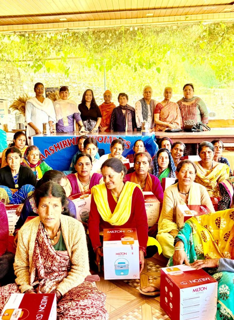 नैनीताल । नगर की प्रतिष्ठित आर्शीवाद क्लब ने बीरवार को अपने सामाजिक दायित्वों का निर्वहन करते हुए नैनीताल के समीपवर्ती ग्राम पंचायत मेहरोड़ा, सोनिया खान तथा पगूंट से लगभग लगभग ३५ महिलाओं/ बालिकाओं तथा बच्चों को एकत्रित कर साड़ी, सूट, टॉप, चादर,जींस, पैंट तथा साल व दुपट्टे तथा स्कूल बैग, मिल्टन के वाटर फिल्टर तथा पेंसिल बॅाकस वितरित किए गये।