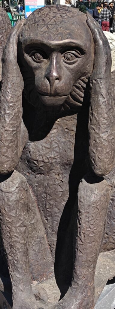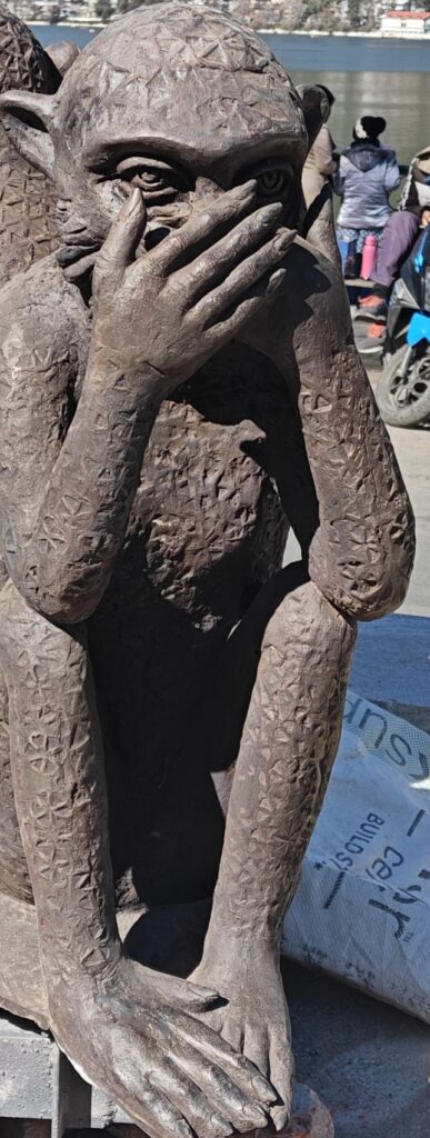 नैनीतालl सरोवर नगरी के गांधी चौक स्थित गांधी जी के तीन बंदर लोगों को संदेश देने के लिए पहुंच गए हैंl बतादे प्रांतीय खंड पीडब्ल्यूडी द्वारा तल्लीताल डाट का चौड़ीकरण के साथ-साथ गांधी जी चरखा कातते हुए मूर्ति को पहले ही स्थापित कर दिया था अब उनके तीन बंदरों को भी स्थापित किया जा रहा है जिसमें एक मुंह में हाथ रखकर कह संदेश दे रहा है बुरा मत बोलो दूसरा आंखें बंद कर संदेश दे रहा है बुरा मत देखो और तीसरा कानो में हाथ रखकर कह रहा है बुरा मत सुनो गांधी जी के तीनों बंदर तीनों दिशाओं से एक साथ होकर संदेश दे रहे हैंl