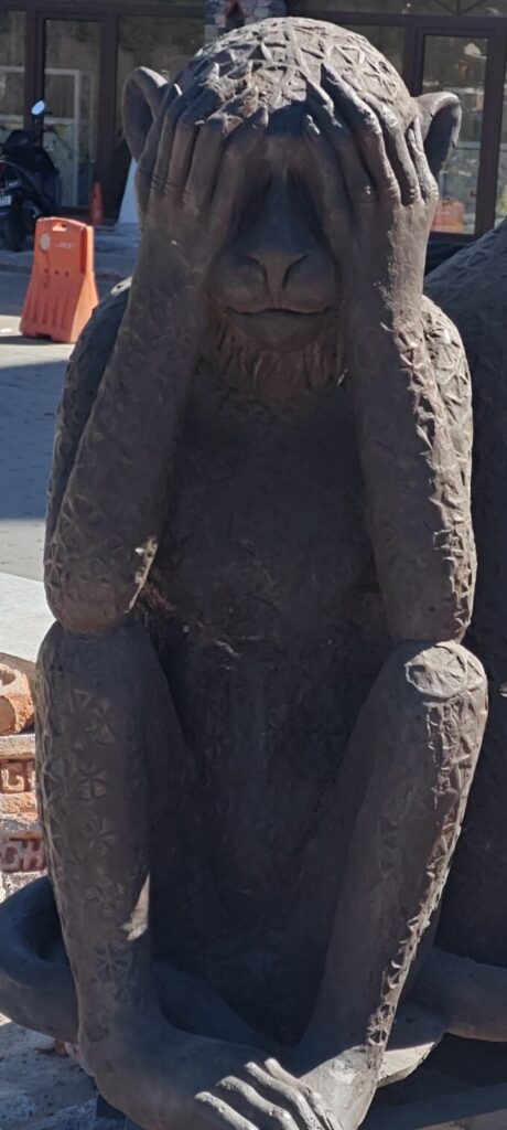 गांधी चौक स्थित गांधी जी के तीन बंदर लोगों को संदेश देने के लिए पहुंचे
