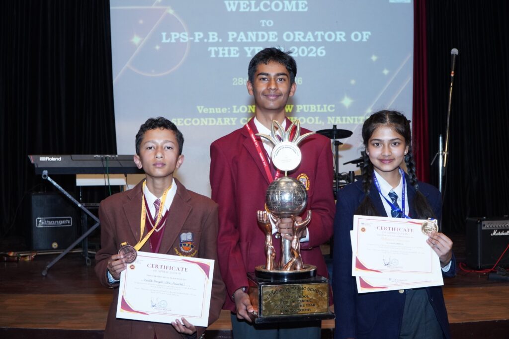 नैनीताल। सरोवर नगरी के प्रतिष्ठित लॉगव्यू पब्लिक स्कूल के प्रांगण मे ’’पी0बी0 पाण्डे ऑरेटर ऑफ द ईयर 2026’’ समारोह का आयोजन किया गया। जिसमें विभिन्न विद्यालयों के प्रतिभागियों ने भाग लिया व विषय ’’द कॉस्ट एण्ड इपैक्ट ऑफ कान्फिलिक्ट: बियान्ड द बैटलफिल्ड – ए केस स्टडी ऑफ यूस-इरान-इजराइल’’ ;(The Cost and Impact of Conflicts: Beyond the Battlefield – A Case Study of US–Iran–Israel Tensions) विषय पर अपने विचार भाषणों के माध्यम से प्रस्तुत किये। कार्यक्रम के अंत मे निर्णायक मण्डल द्वारा उत्कृष्ट तीन प्रतिभागियों का चयन किया गया जिसमें लेक्स इण्टरनेशनल भीमताल के सागनिक डे को प्रथम पुस्कार, 3000 रू0, प्रमाणपत्र व ट्रॉफी प्रदान की गयी। द्वितीय स्थान पर गुरूकुल इण्टरनेशनल स्कूल हल्द्वानी की छात्रा नाविका जोशी एवं हरमन माइनर स्कूल भीमताल की माहीरा हुसैन रही तथा तृतीय स्थान पर लॉगव्यू पब्लिक स्कूल नैनीताल के हार्दिक बर्गली रहे। निर्णायक मण्डल में प्रो0 हरिप्रिया पाठक डी0 एस0 बी0 कैम्पस तथा प्रो0 अस्मिता बजाज रहे। कार्यक्रम मे विभिन्न विद्यालयों से आये हुए प्रतिभागी, अध्यापक/अध्यापिकाऐं, लॉगव्यू पब्लिक स्कूल की संरक्षिका व निदेशक सुनीता त्रिपाठी, प्रधानाचार्य भुवन चन्द्र त्रिपाठी उप प्रधानाचार्या कविता सनवाल, छात्र-छात्राएं शिक्षक शिक्षिकाएं कर्मचारी मौजूद थे।