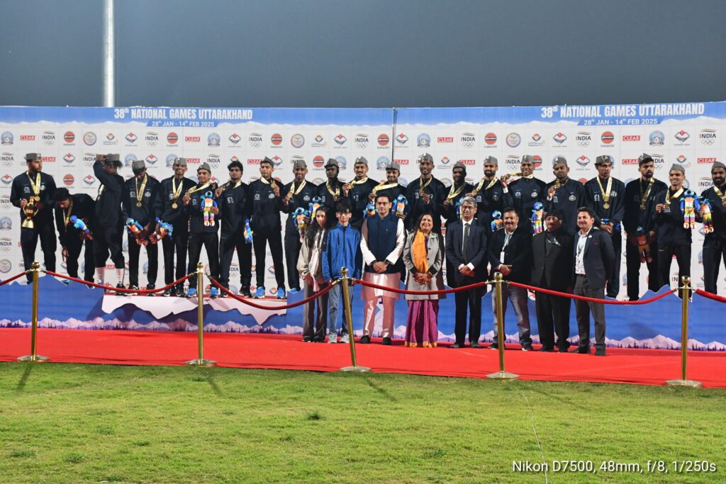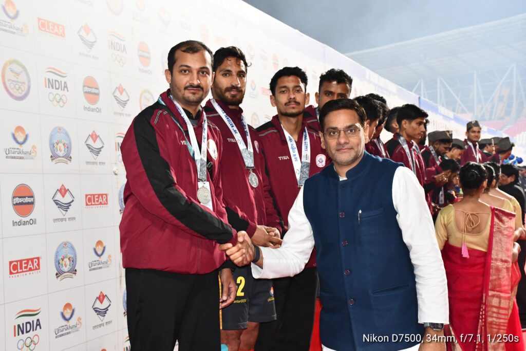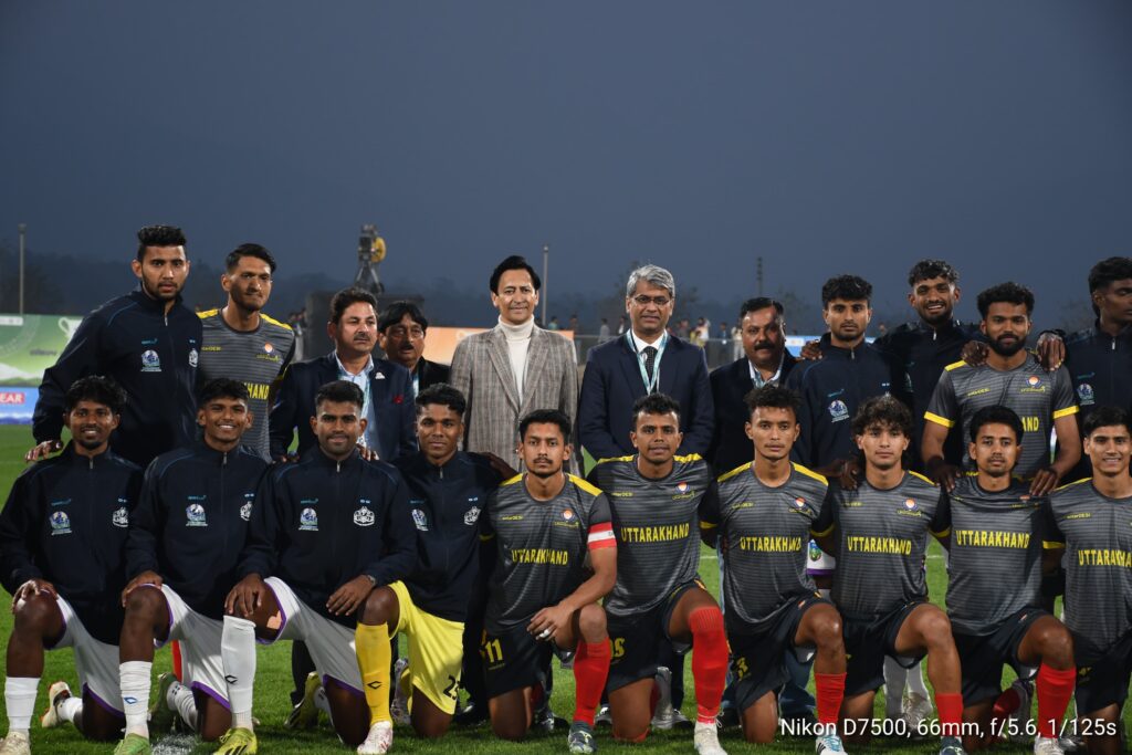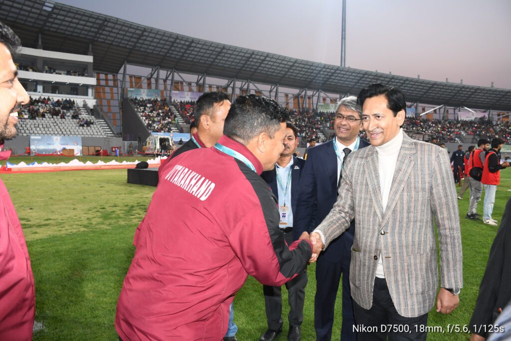 फुटबॉल के फाइनल मैच के मौके पर बतौर मुख्य अतिथि उत्तराखंड सरकार में माननीय कैबिनेट मंत्री सौरभ बहुगुणा ने फुटबॉल मैच देखा तथा दोनों टीमों के खिलाड़ियों का मनोबल बढ़ाया। इस दौरान कैबिनेट मंत्री ने कहा कि राष्ट्रीय खेलों के आयोजन से राज्य में खेलों का बेहतर माहौल बन गया है, इन खेलों में यहाँ की खेल प्रतिभाएं निखर कर आगे आई हैं।निश्चित रूप से राज्य को यह आयोजन खेलों के क्षेत्र में आगे बढ़ाएगा।