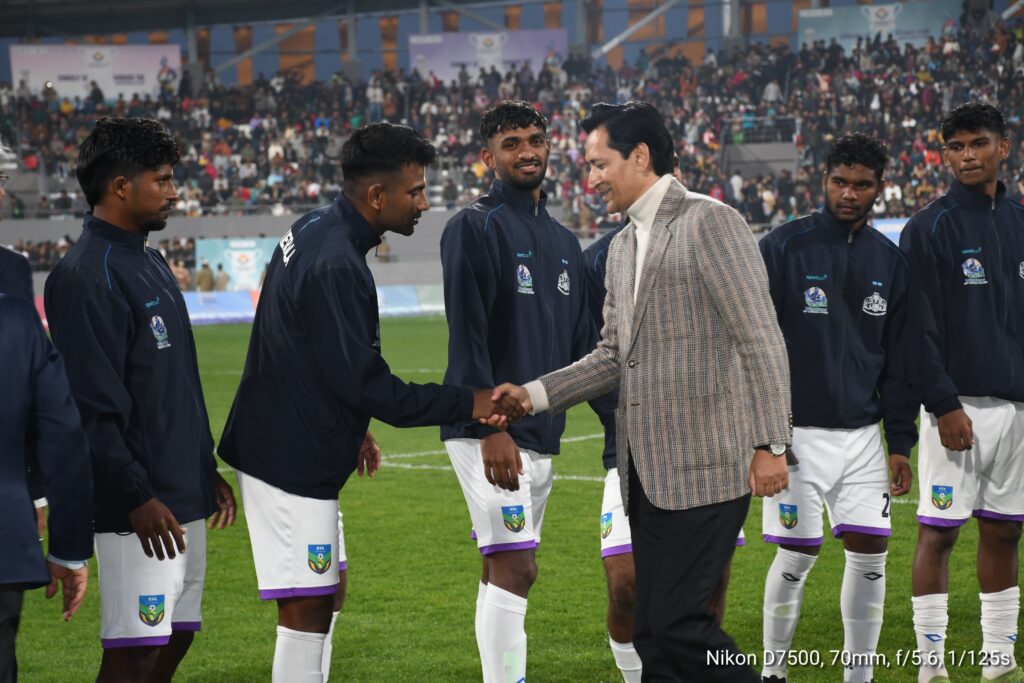 उन्होंने कहा कि राज्य सरकार प्रदेश में खेल गतिविधियों को आगे बढ़ाने हेतु और अधिक रूप से कार्य करेगी जिससे यहॉ के खिलाड़ी राष्ट्रीय एवं अंतराष्ट्रीय स्तर पर आगे बढ़ सकें और राज्य का नाम रौशन कर सकें। इस दौरान माननीय मंत्री ने फुटबॉल मैच का आनंद लिया, तथा दोनों टीमों के खिलाड़ियों का उत्साह बढ़ाया,तथा विजेता एवं उप विजेता टीम को मेडल प्रदान कर खिलाड़ियों को सम्मानित किया। इस दौरान उन्होंने खेल का भी आनंद लिया तथा खिलाड़ियों का मनोबल बढ़ाते हुए उनका उत्साहवर्धन किया।