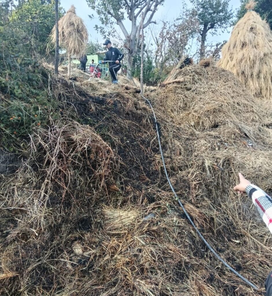 घास के लूटो मे आग को फायर कर्मियों ने बुझाया